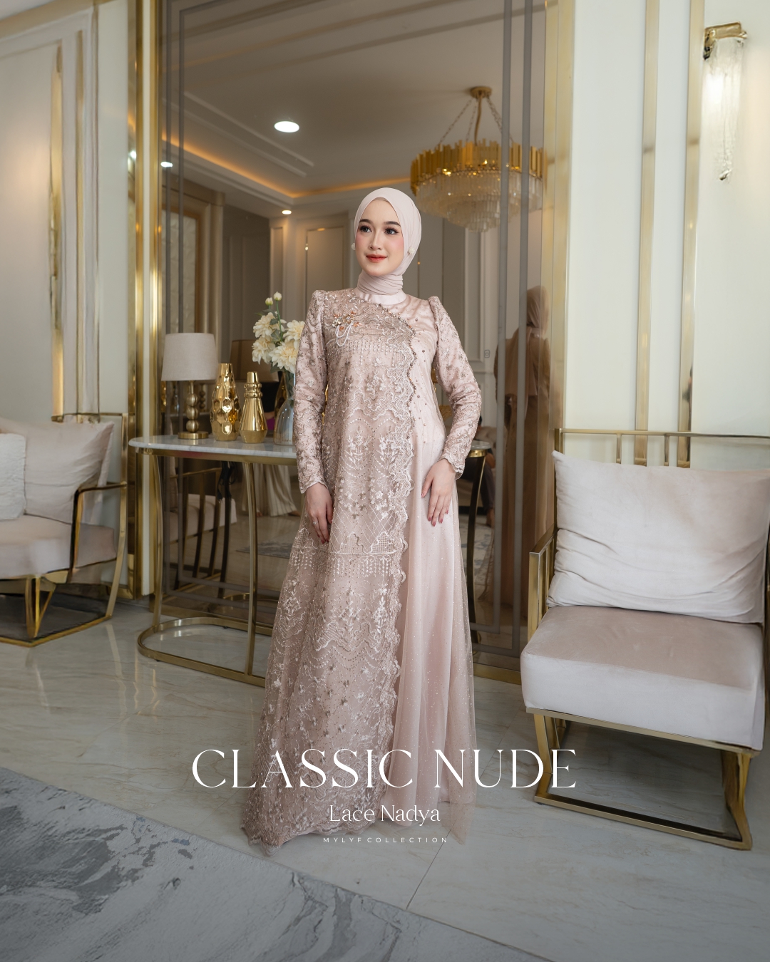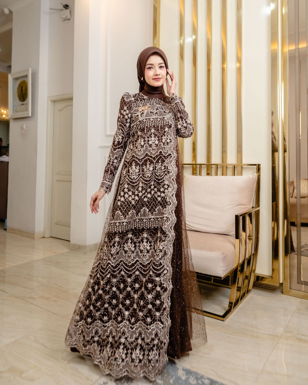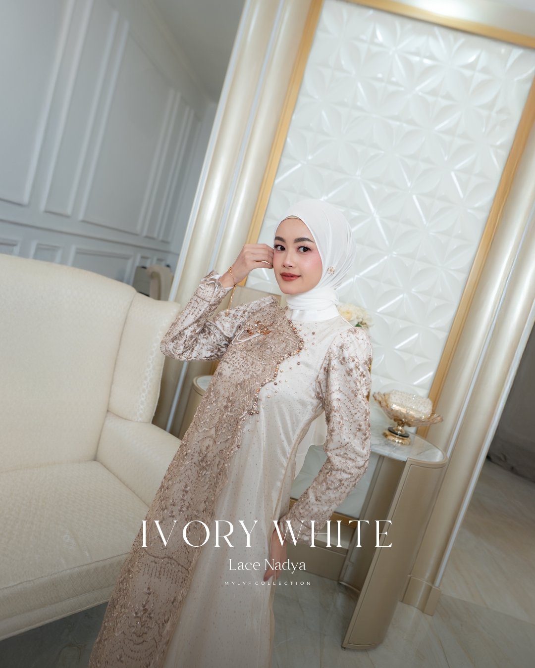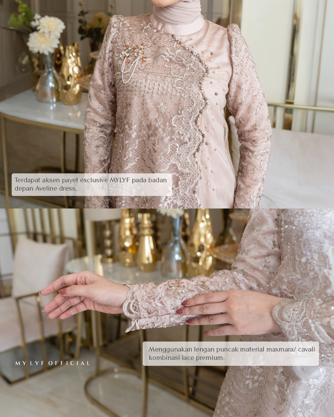 Terdapat variasi cutting lace premium berbentuk janggan dengan tambahan aksen payet exclusive MYLYF