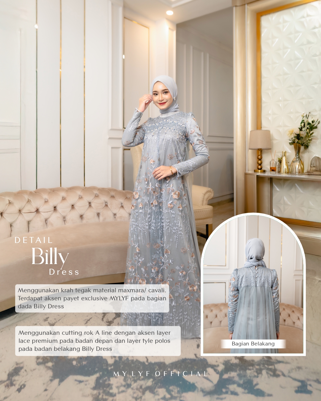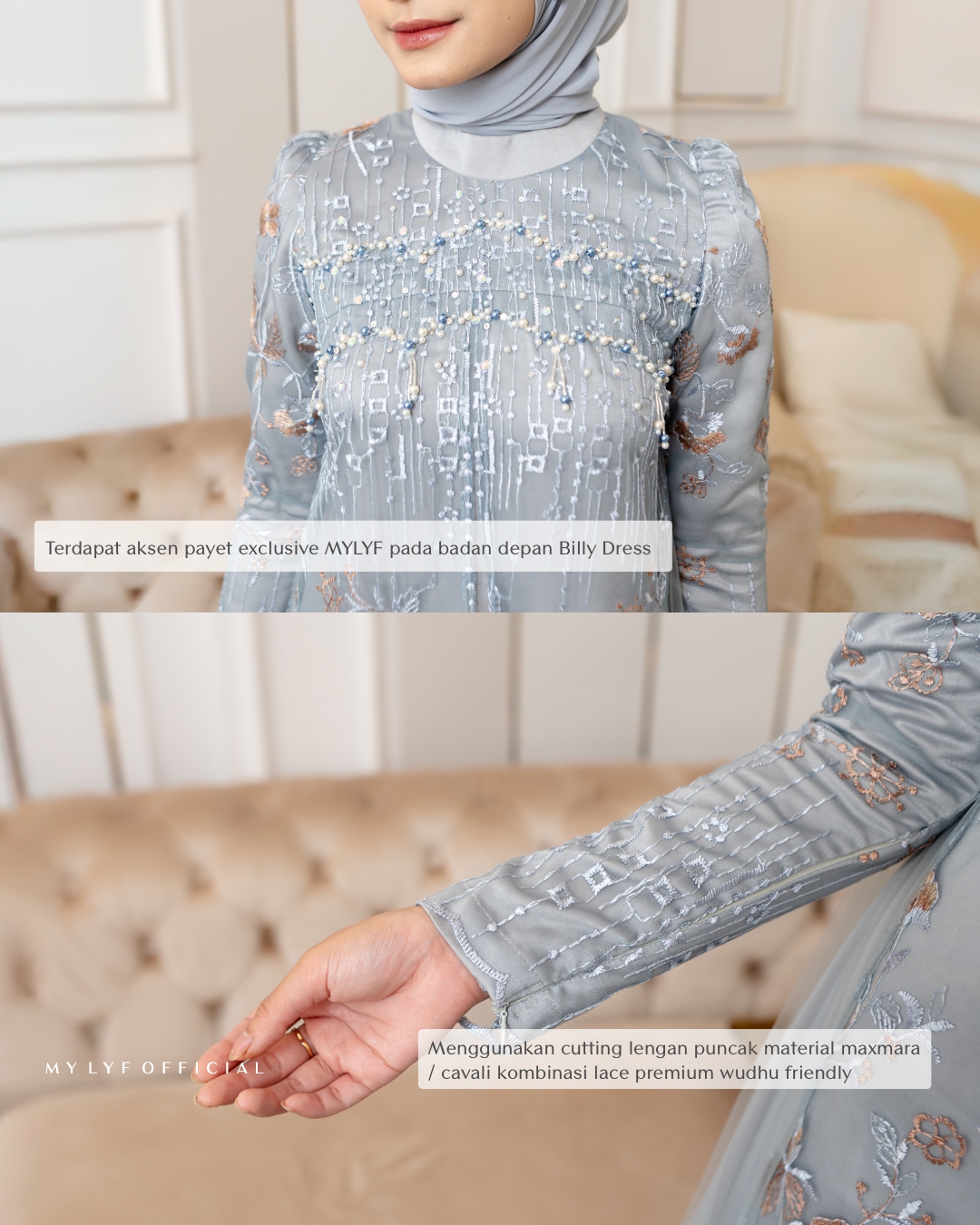 Terdapat aksen payet exclusive MYLYF pada bagian dada Billy Dress