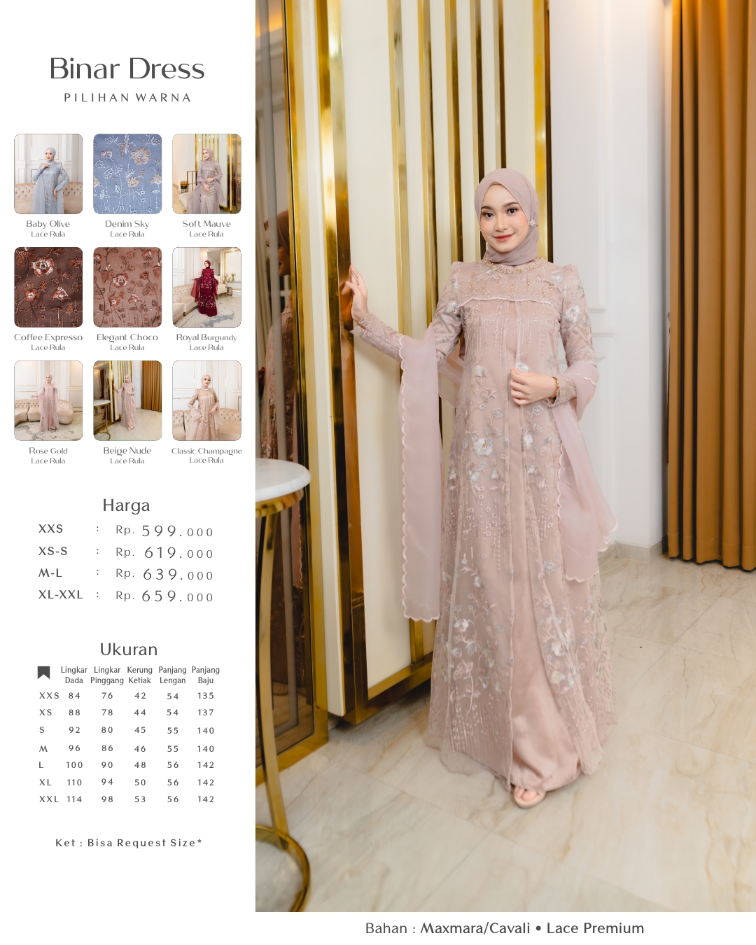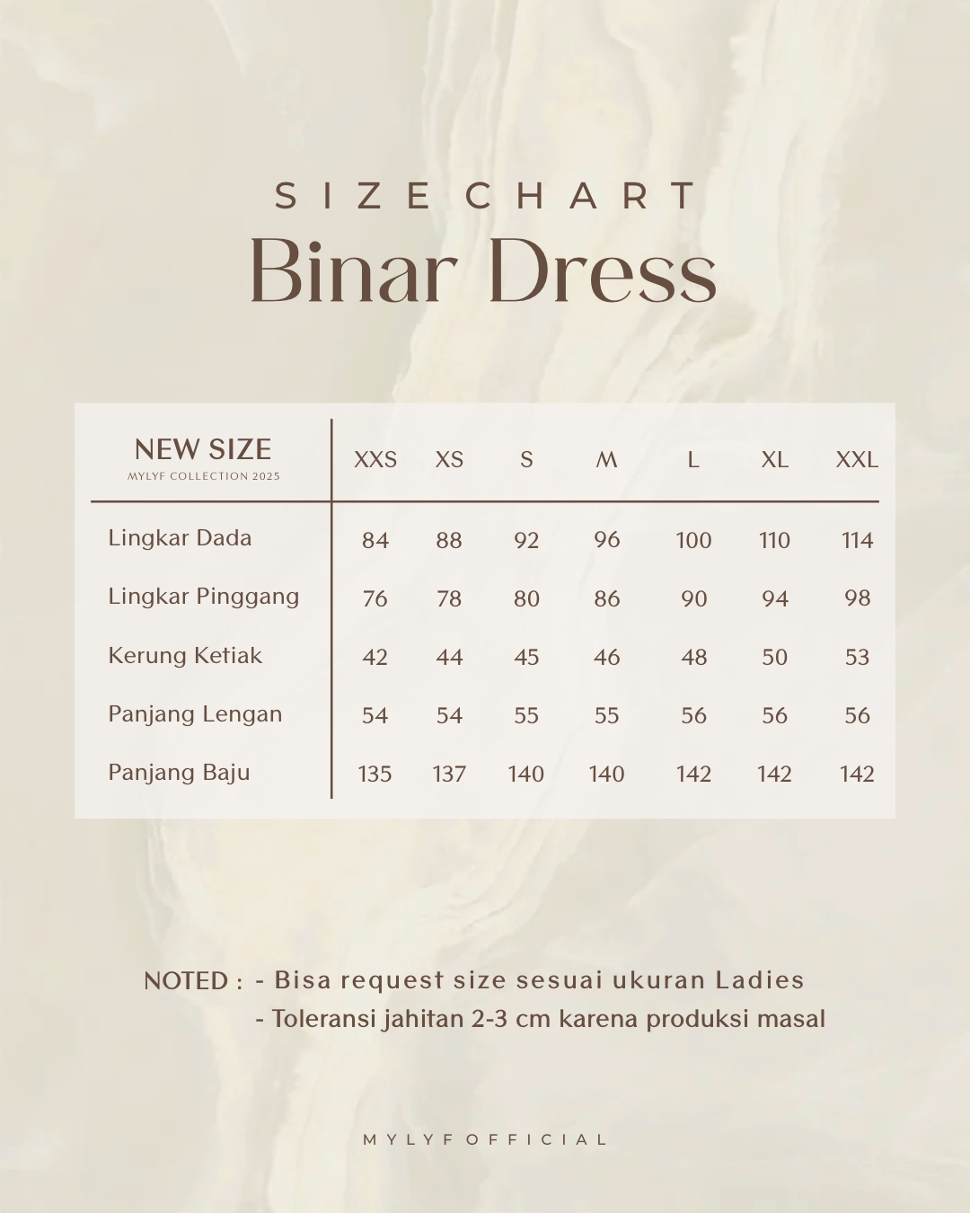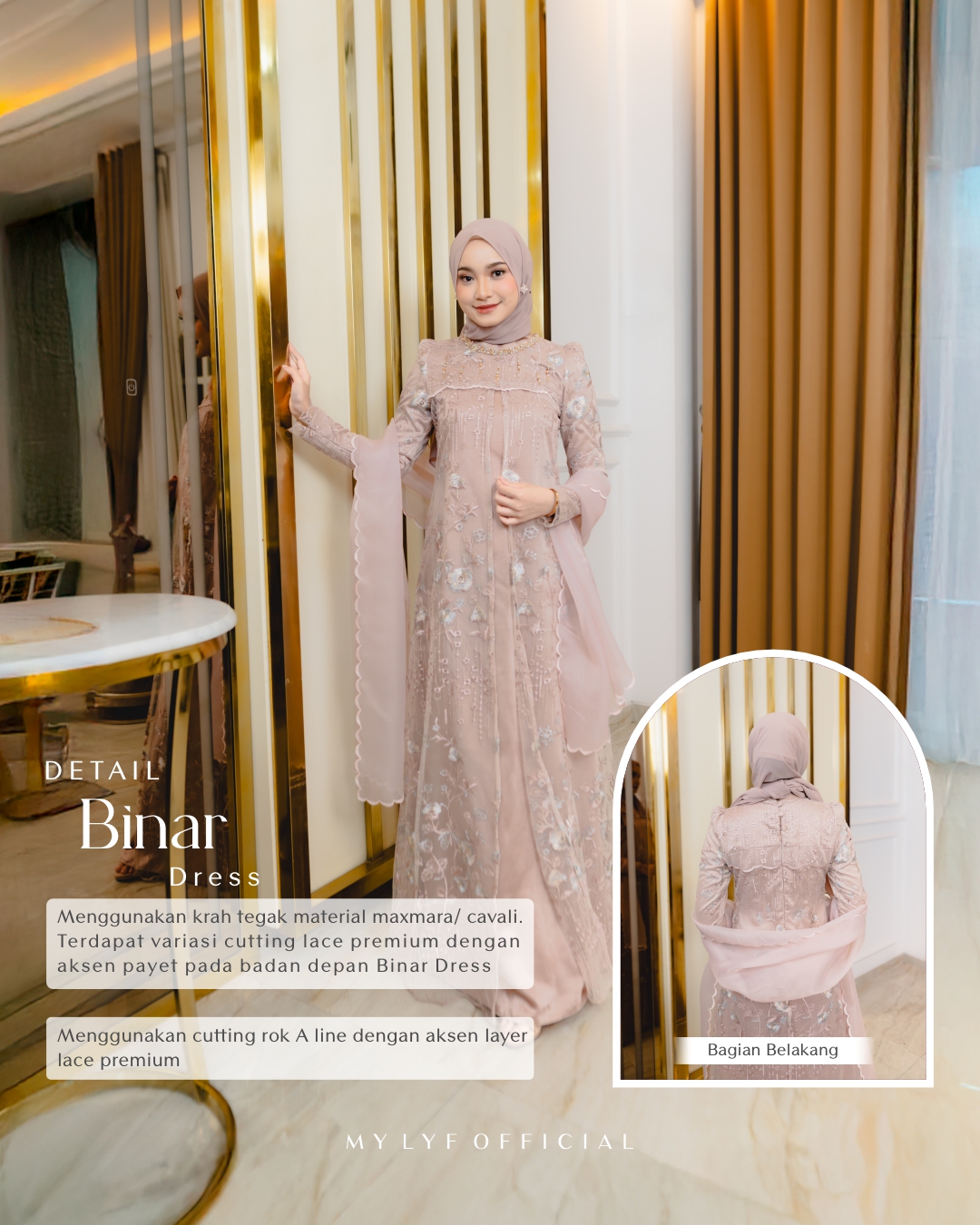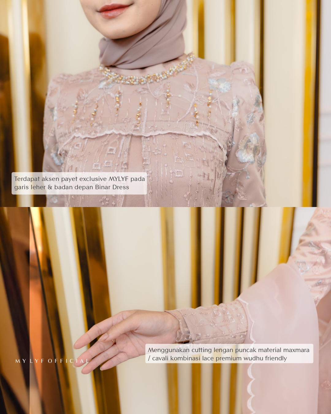 • Terdapat variasi cutting lace premium dengan aksen payet exclusive MYLYF pada badan depan Binar Dress