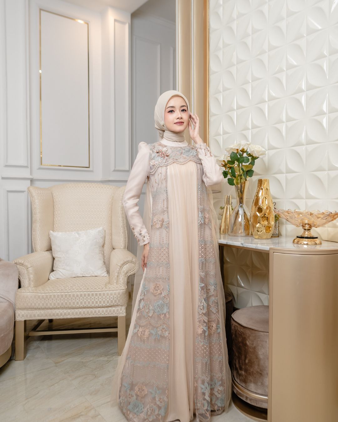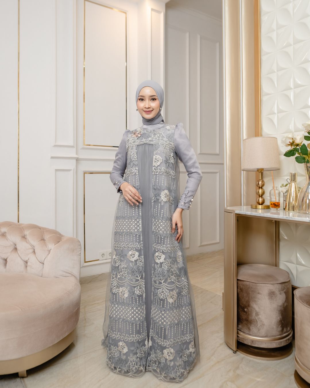 • Pola rok A line dengan aksen layer lace premium dan tyle polos