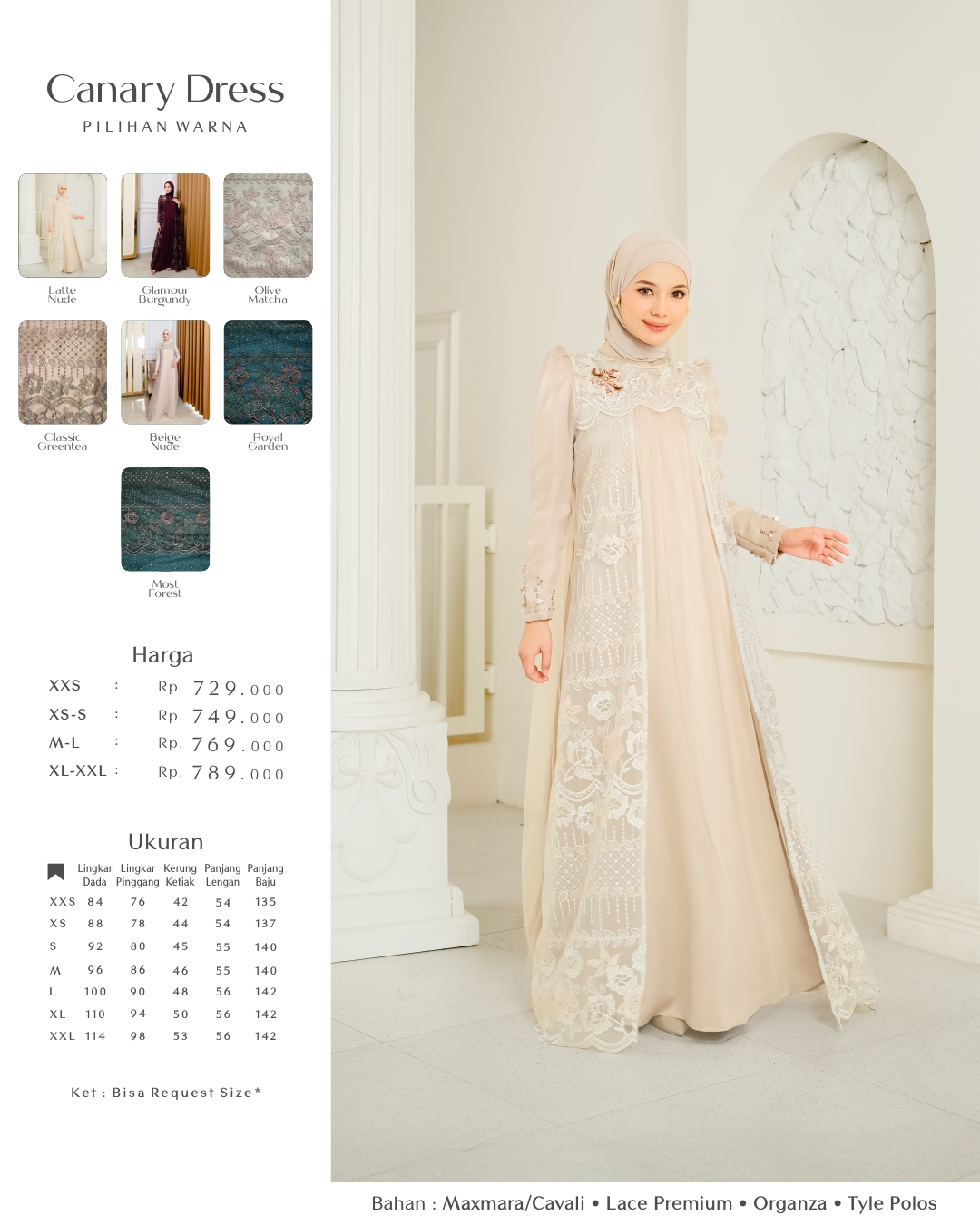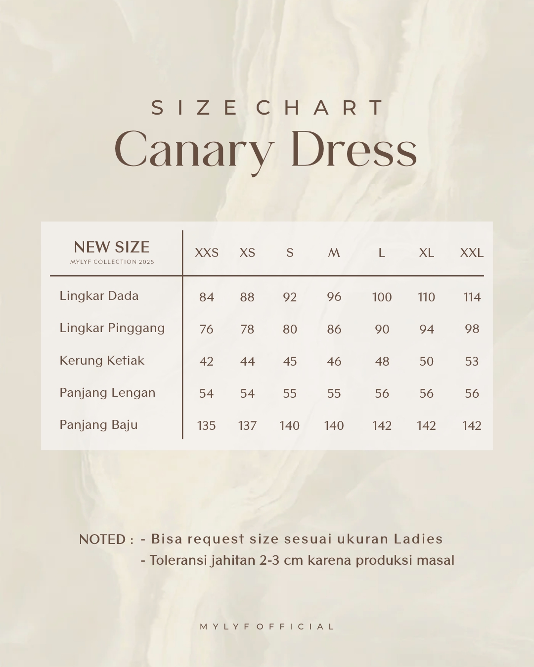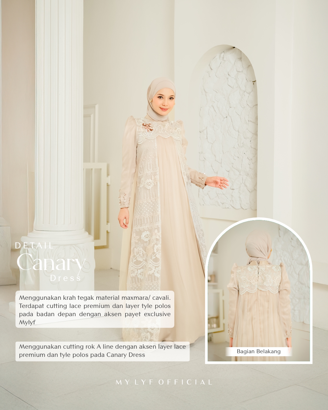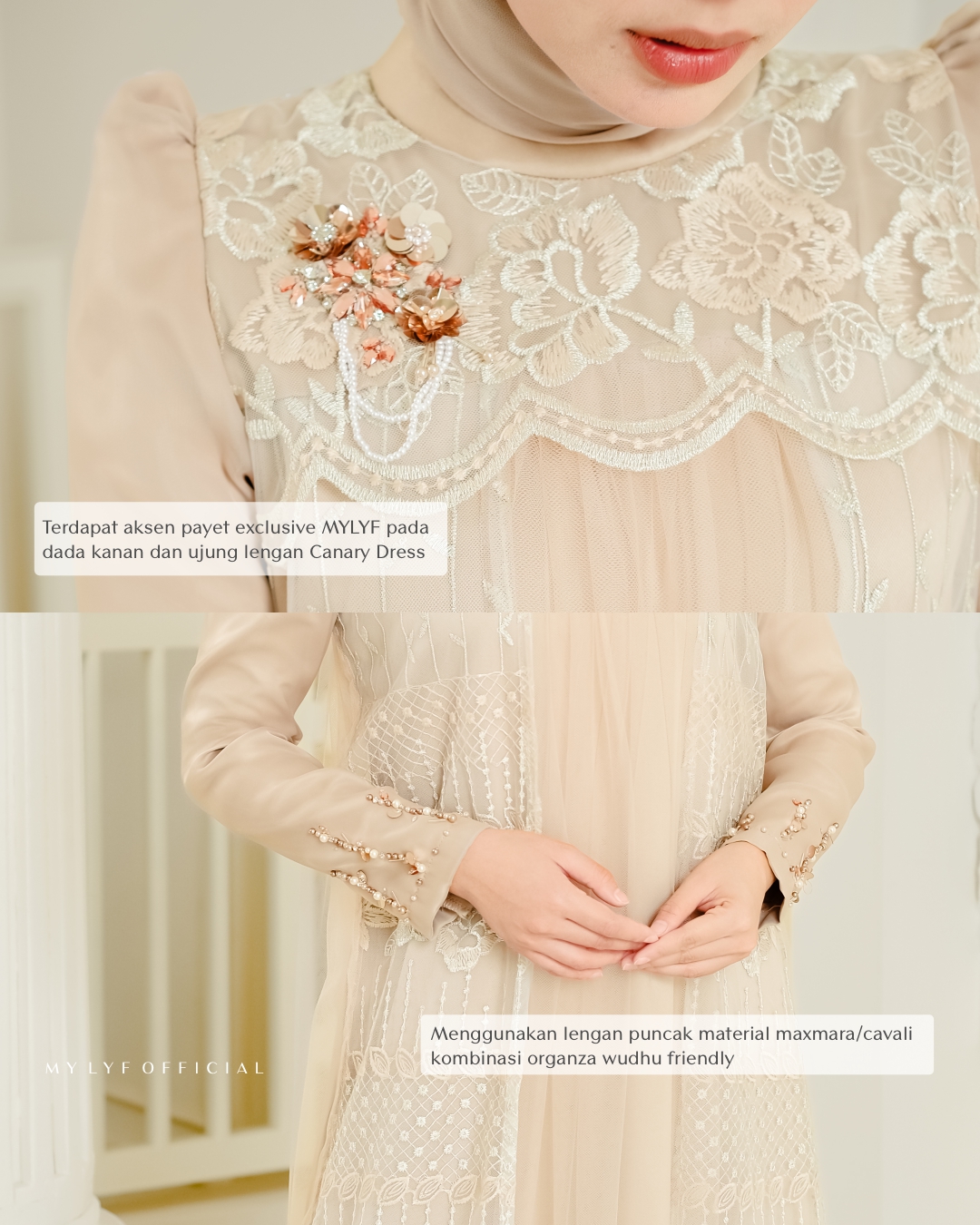 • Terdapat hiasan payet exclusive MYLYF pada dada kanan dan ujung lengan Canary Dress