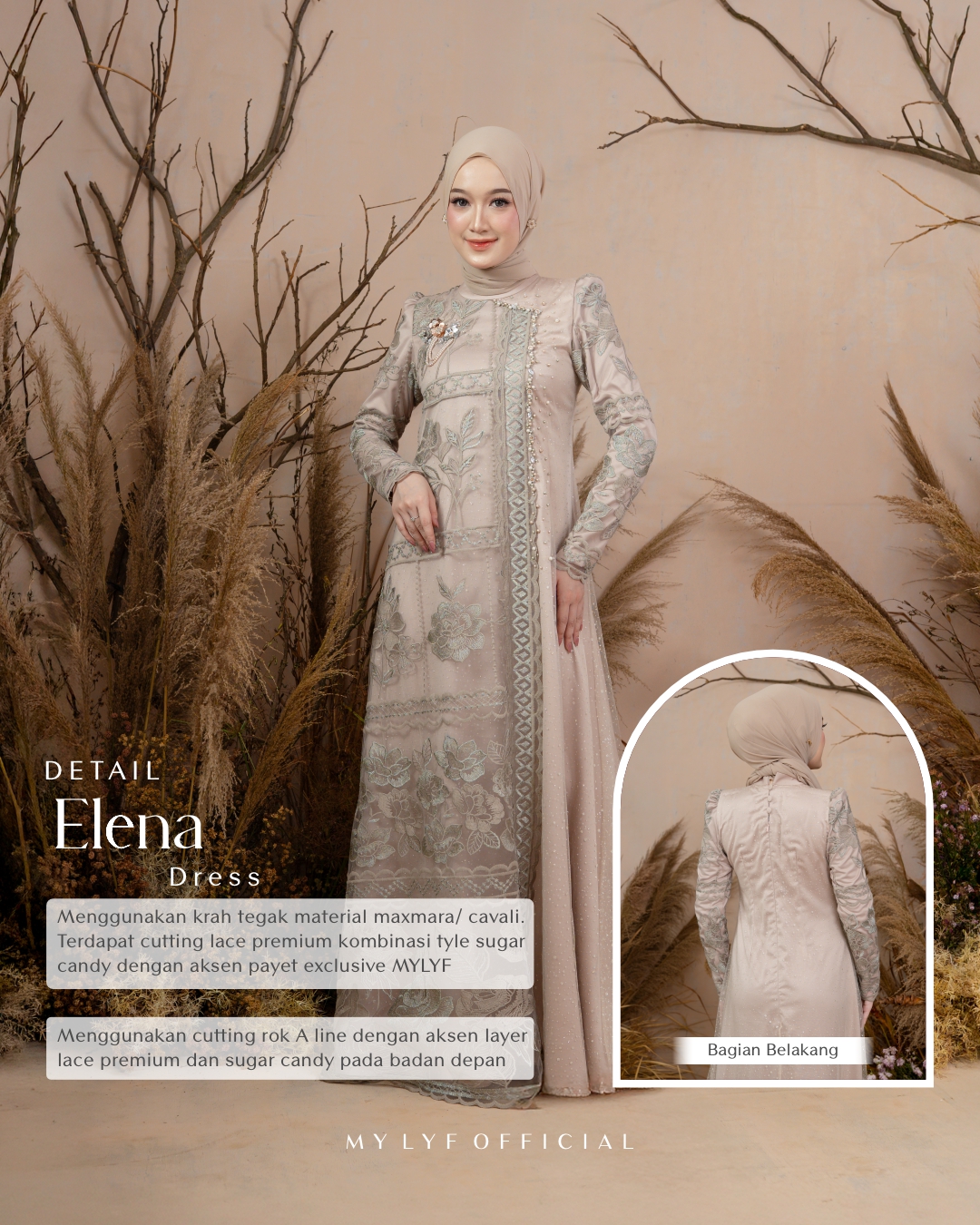 Terdapat cutting lace premium kombinasi sugar candy dengan aksen payet exclusive MYLYF