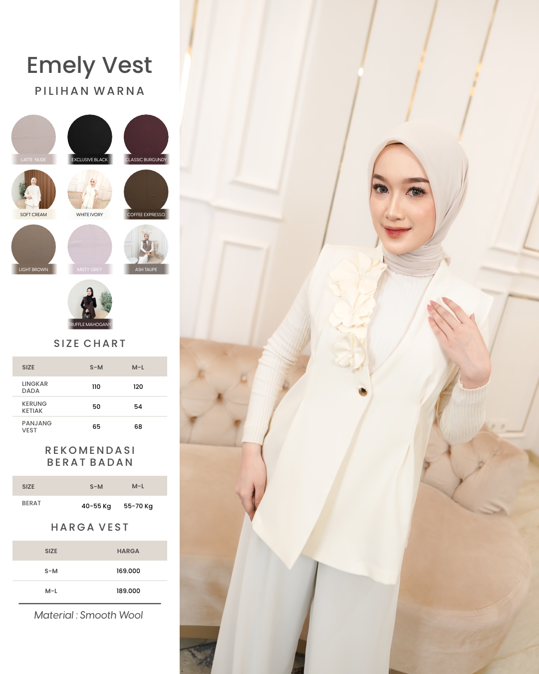 LATTE NUDE, EXCLUSIVE BLACK, CLASSIC BURGUNDY, SOFT CREAM, WHITE IVORY, COFFE EXPRESSO, LIGHT BROWN, MISTY GREY, ASH TAUPE, TRUFFLE MAHOGANY