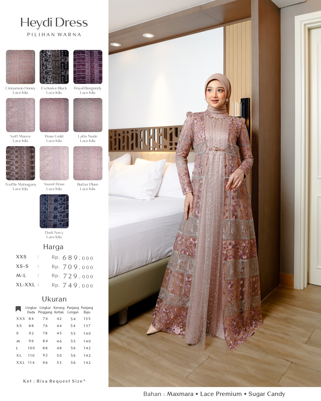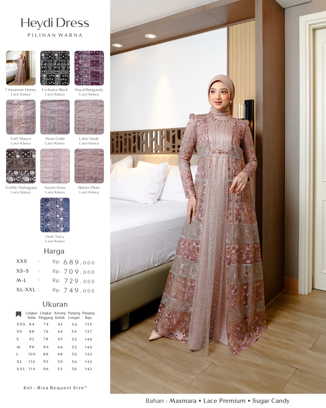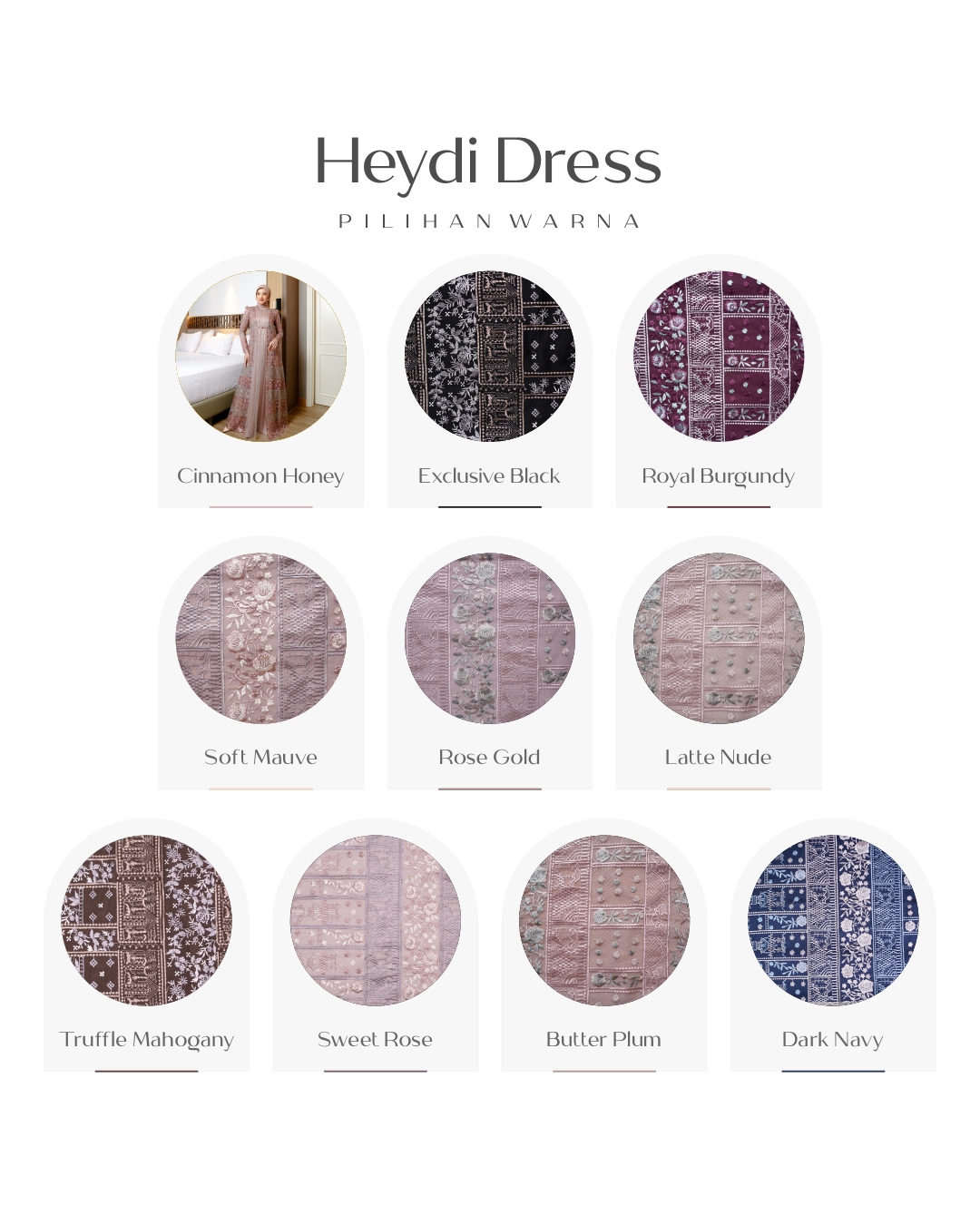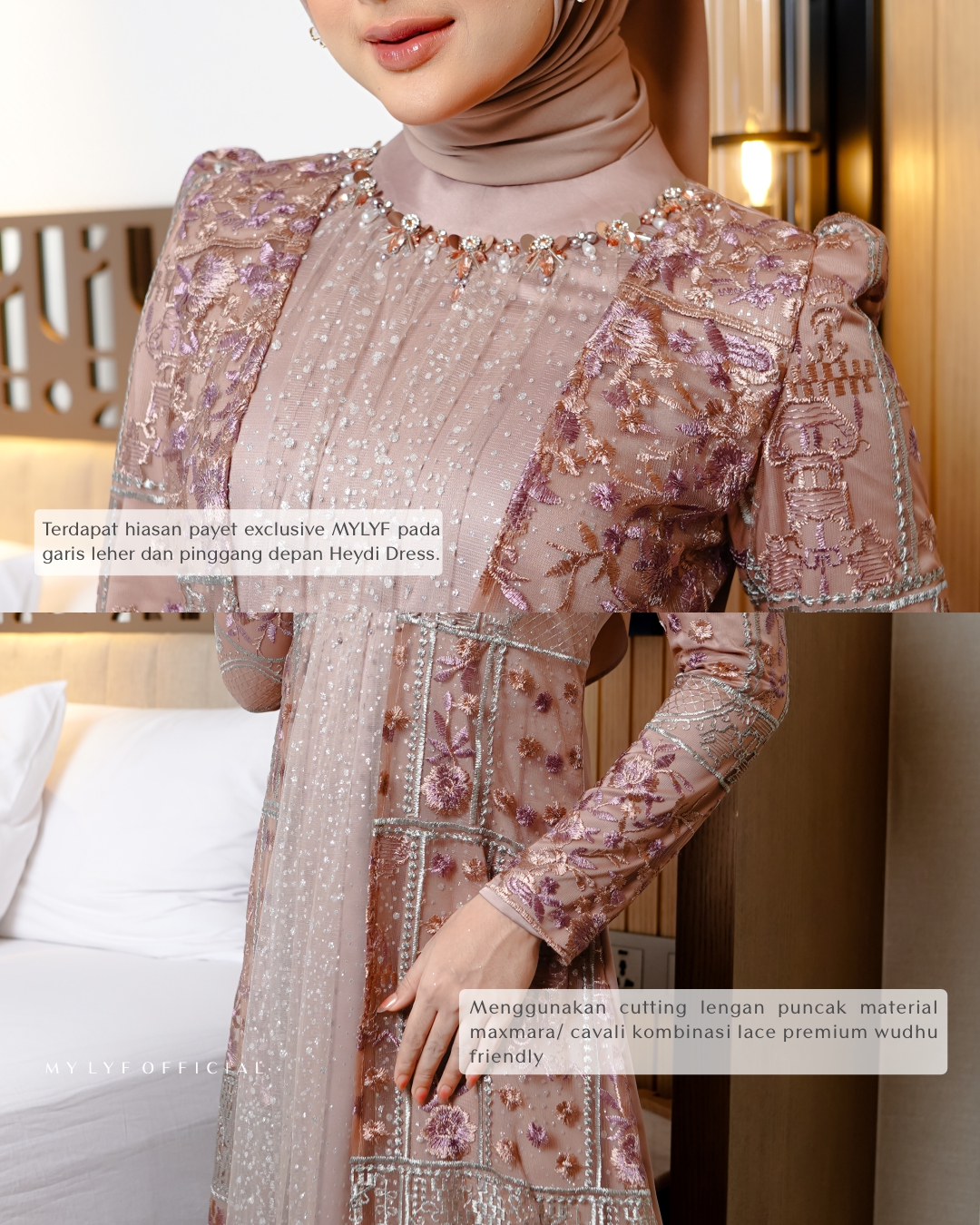 • Terdapat hiasan payet exclusive MYLYF pada garis leher dan pinggang depan Heydi Dress