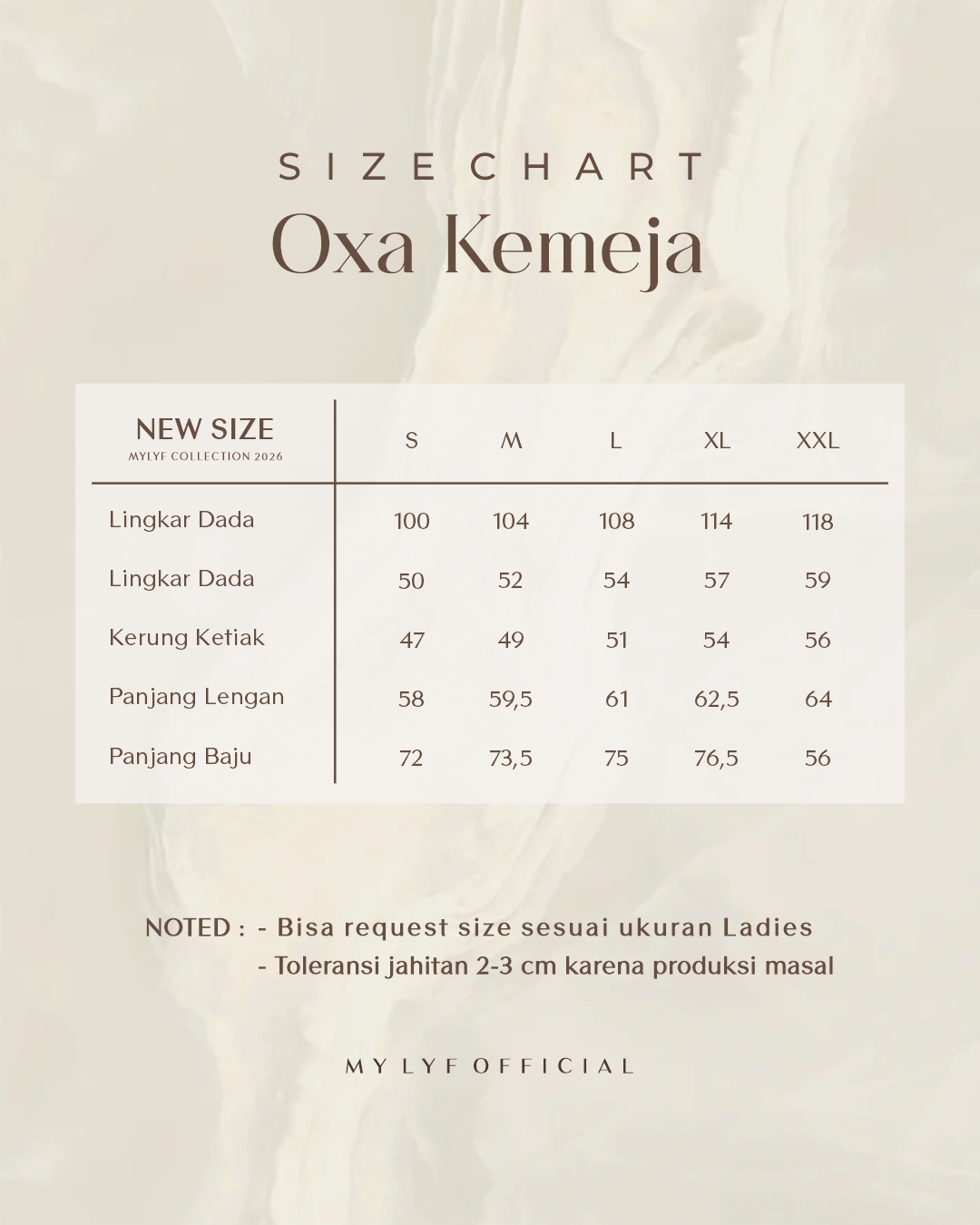 S, M, L, XL, XXL