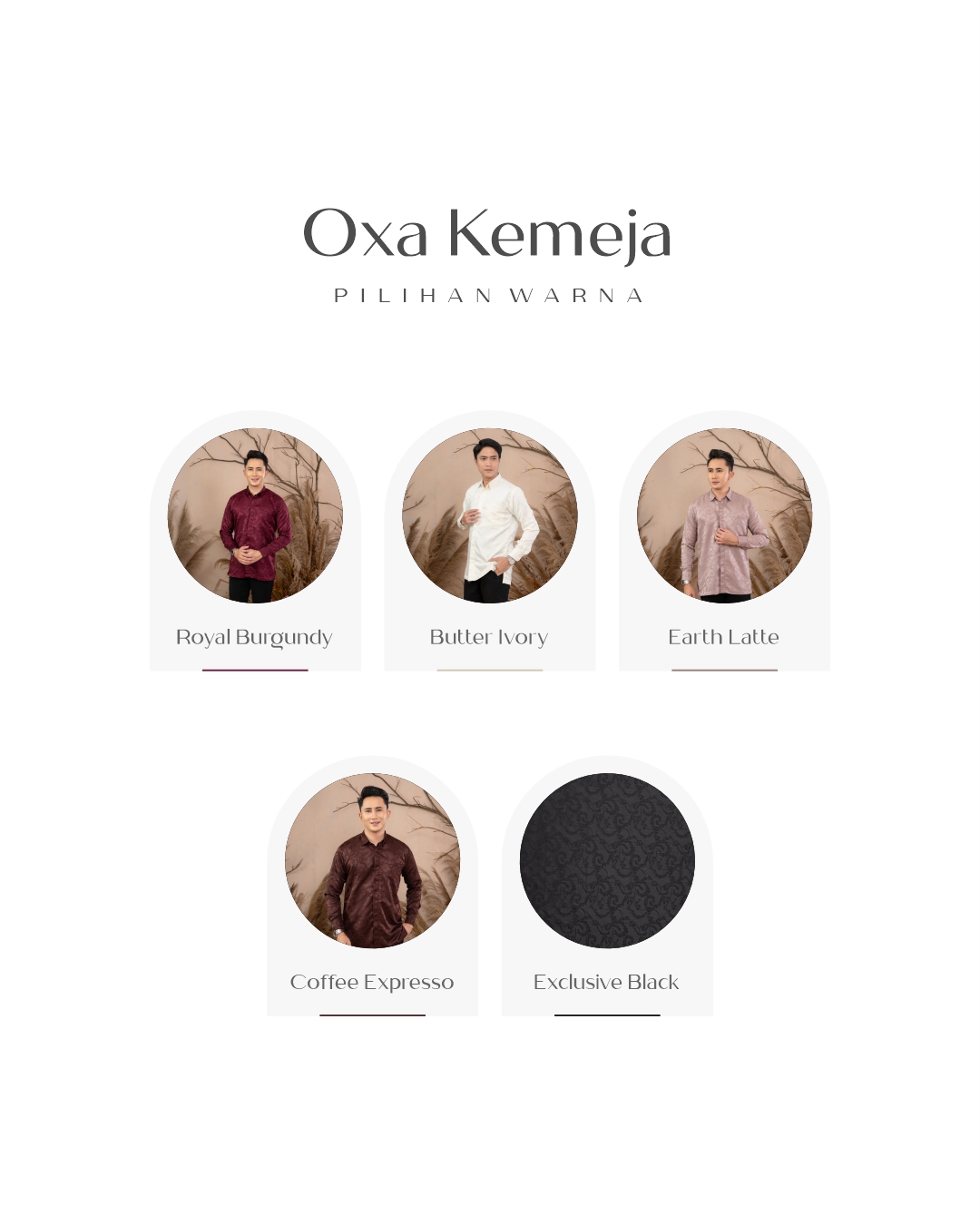 BUTTER IVORY, EXCLUSIVE BLACK, COFFE EXPRESSO, BROKEN WHITE, CLASSIC NAVY