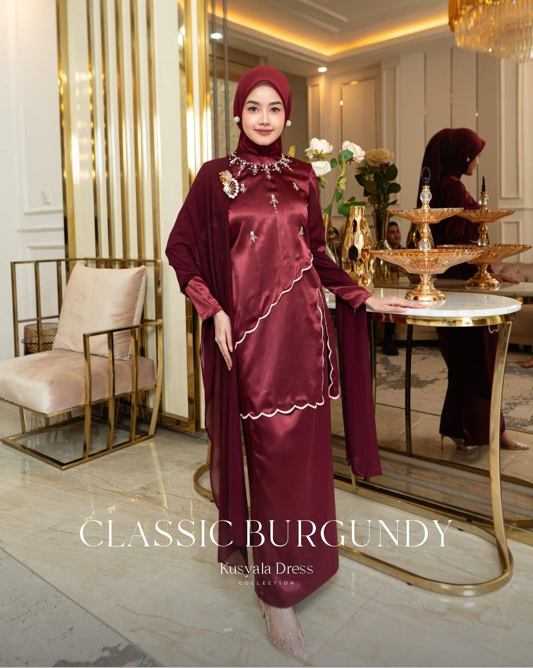 Terdapat selendang ceruty arabian yang bisa dipadu padankan dengan bros