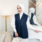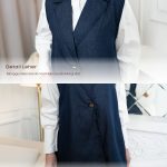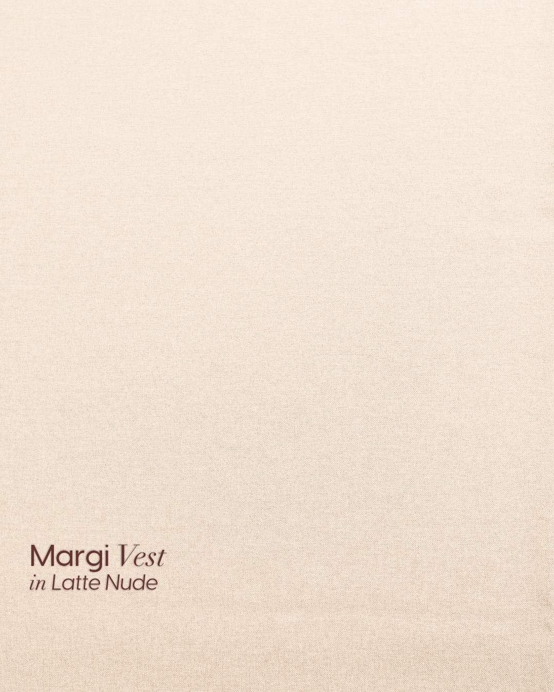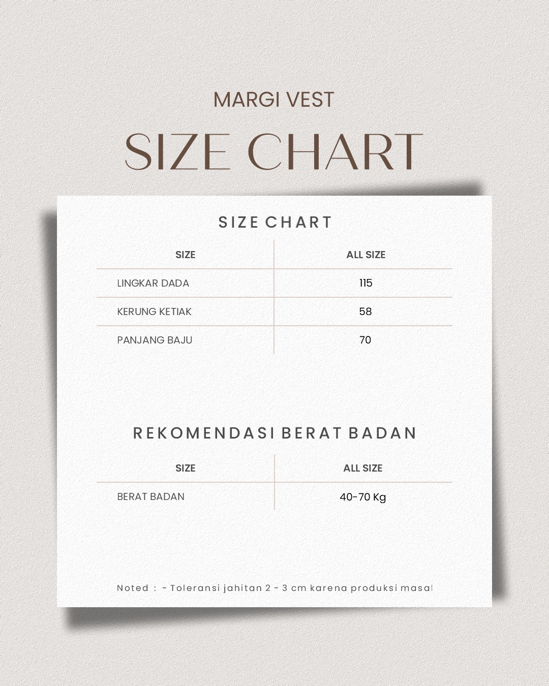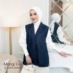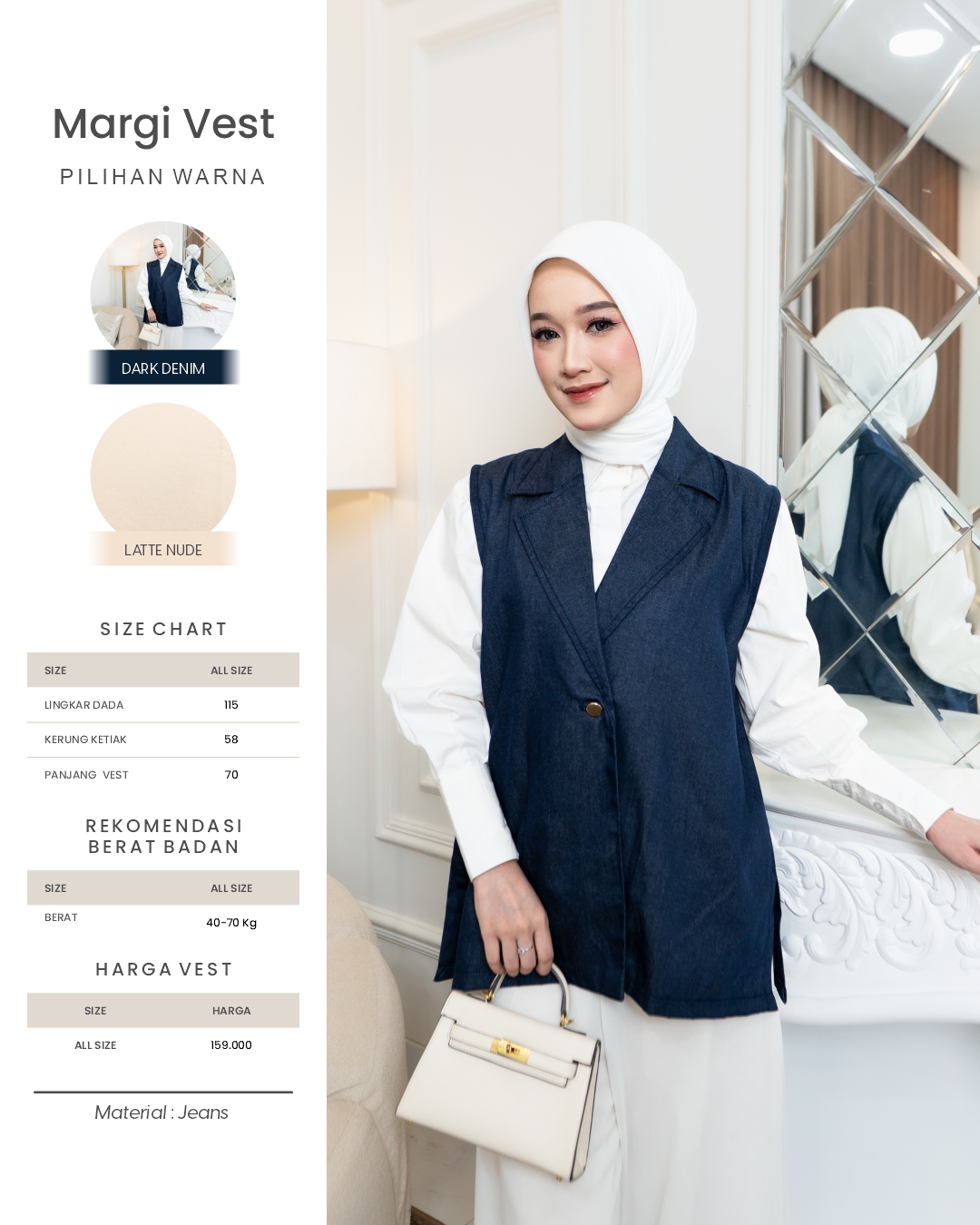 Terdapat aksen kancing gold pada bukaan depan dan terdapat belahan sisi pada Margi Vest
