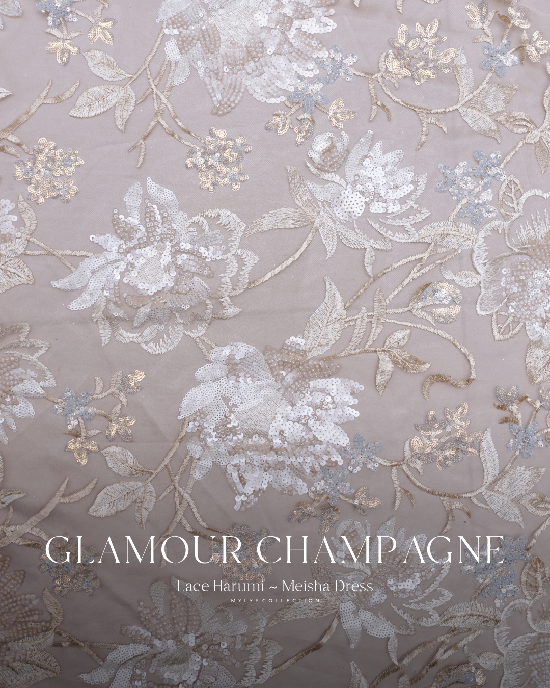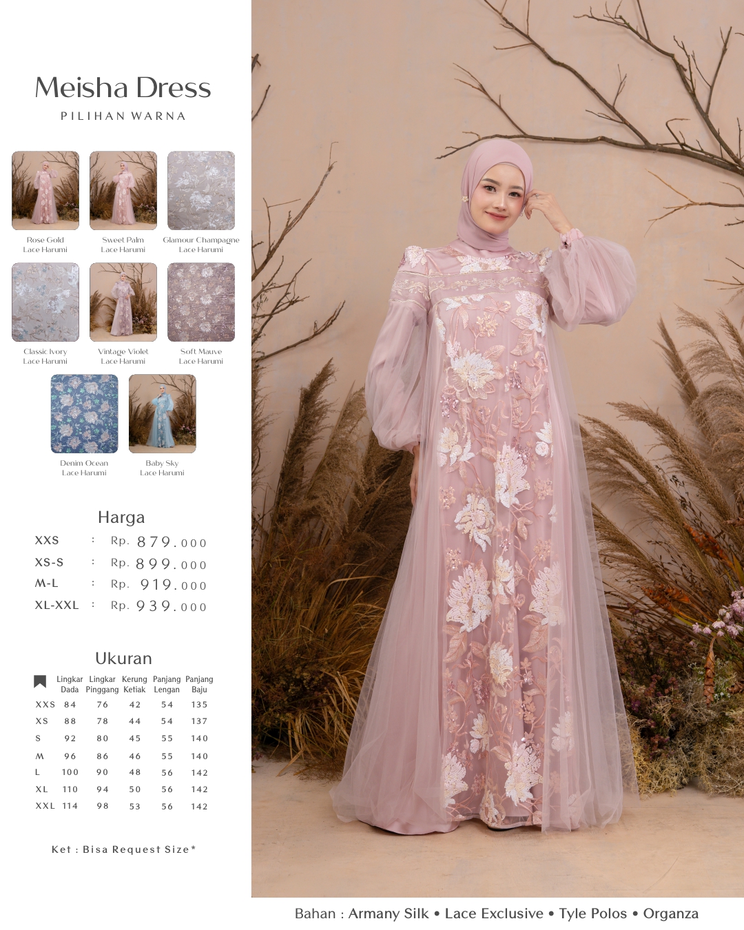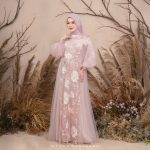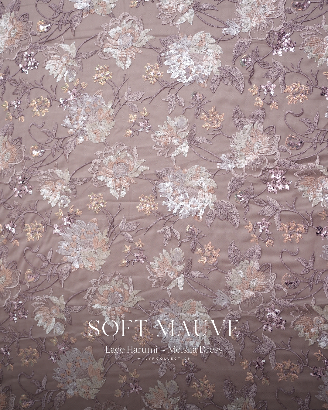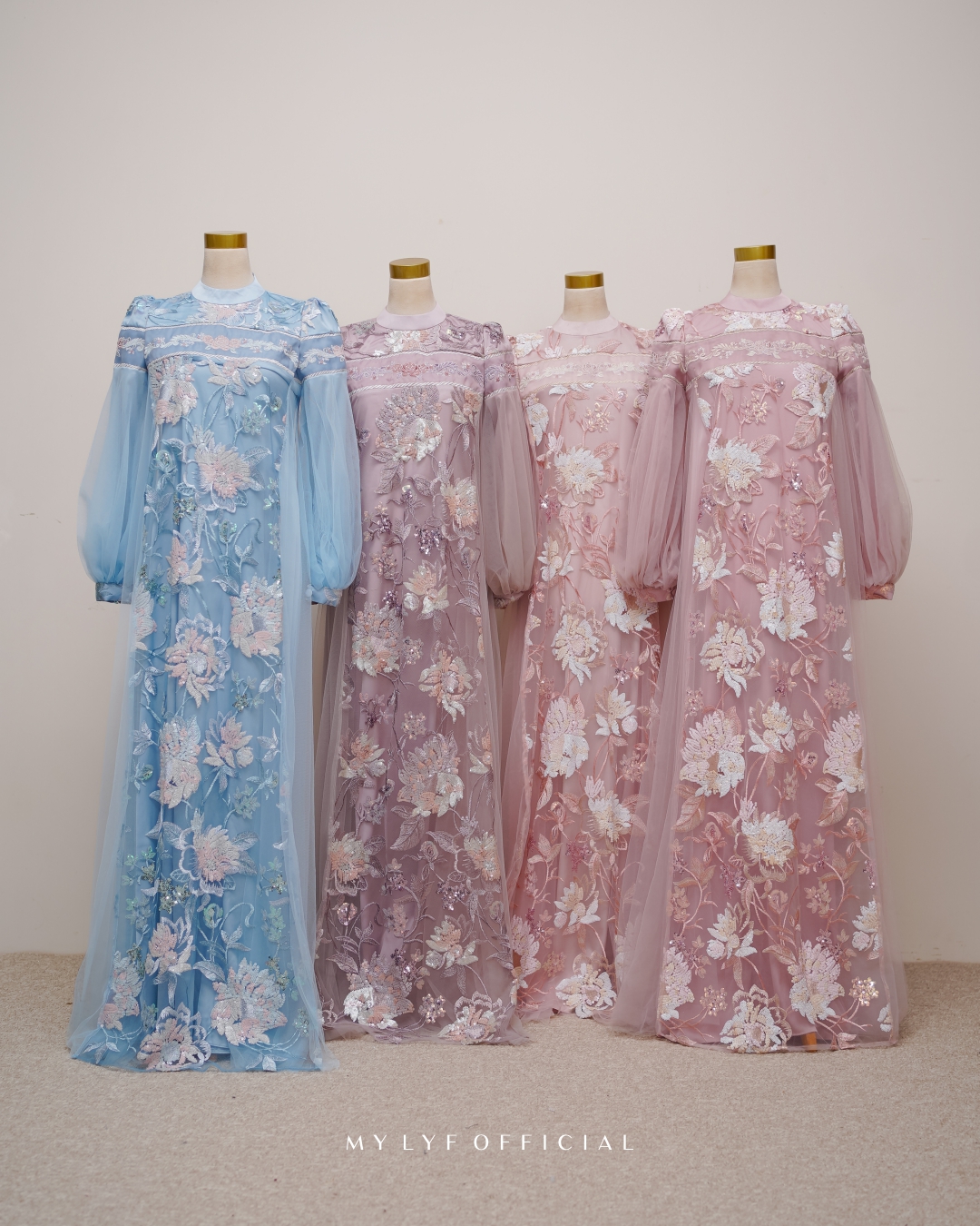 • Terdapat kombinasi lace exclusive, tyle polos, dan aksen bordir organza pada bagian dada dan lengan atas