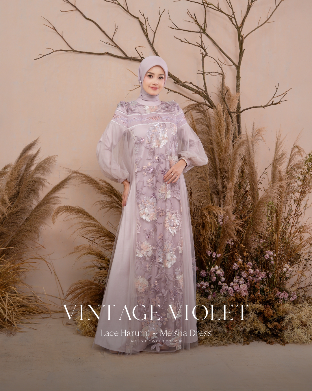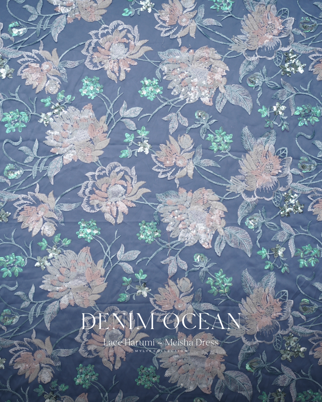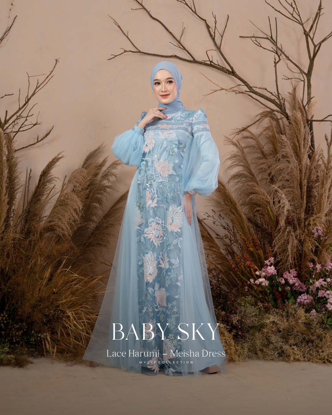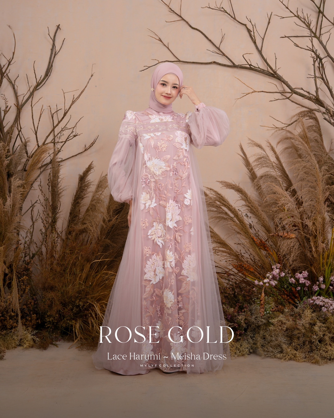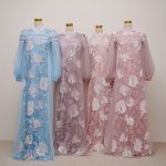 • Terdapat kombinasi lace exclusive, tyle polos, dan aksen bordir organza pada bagian dada dan lengan atas