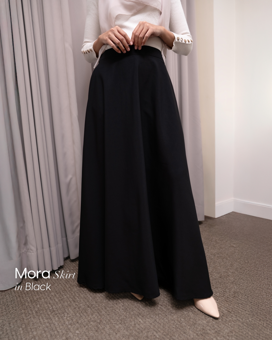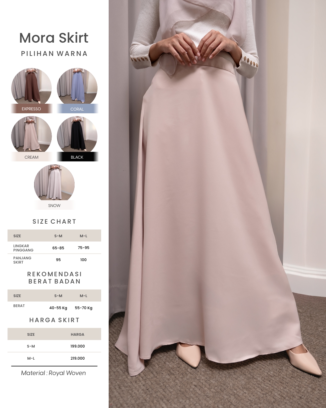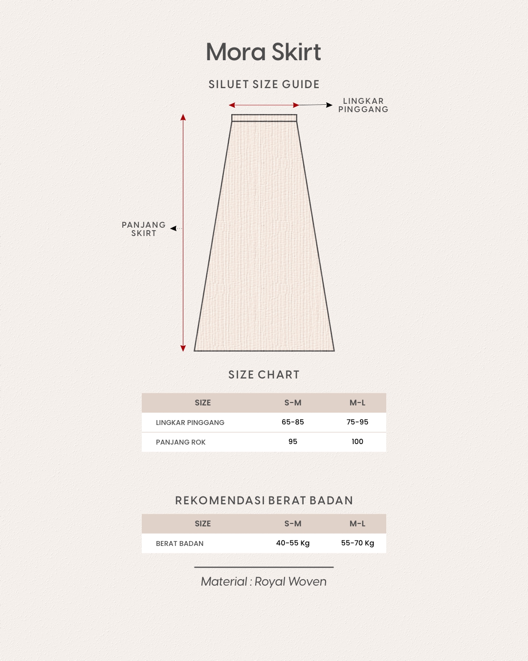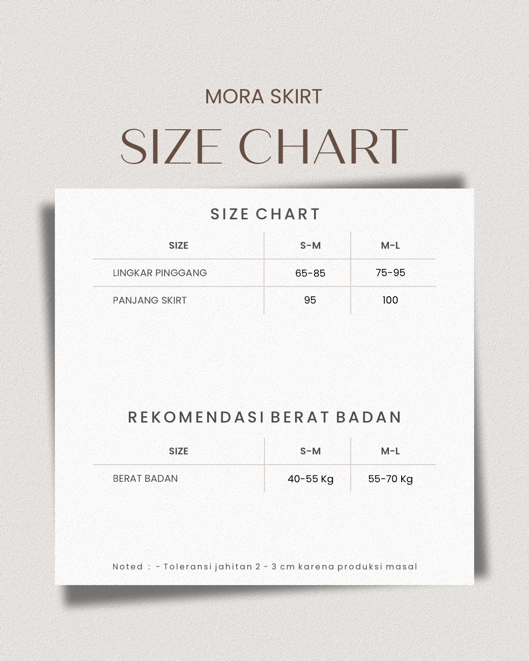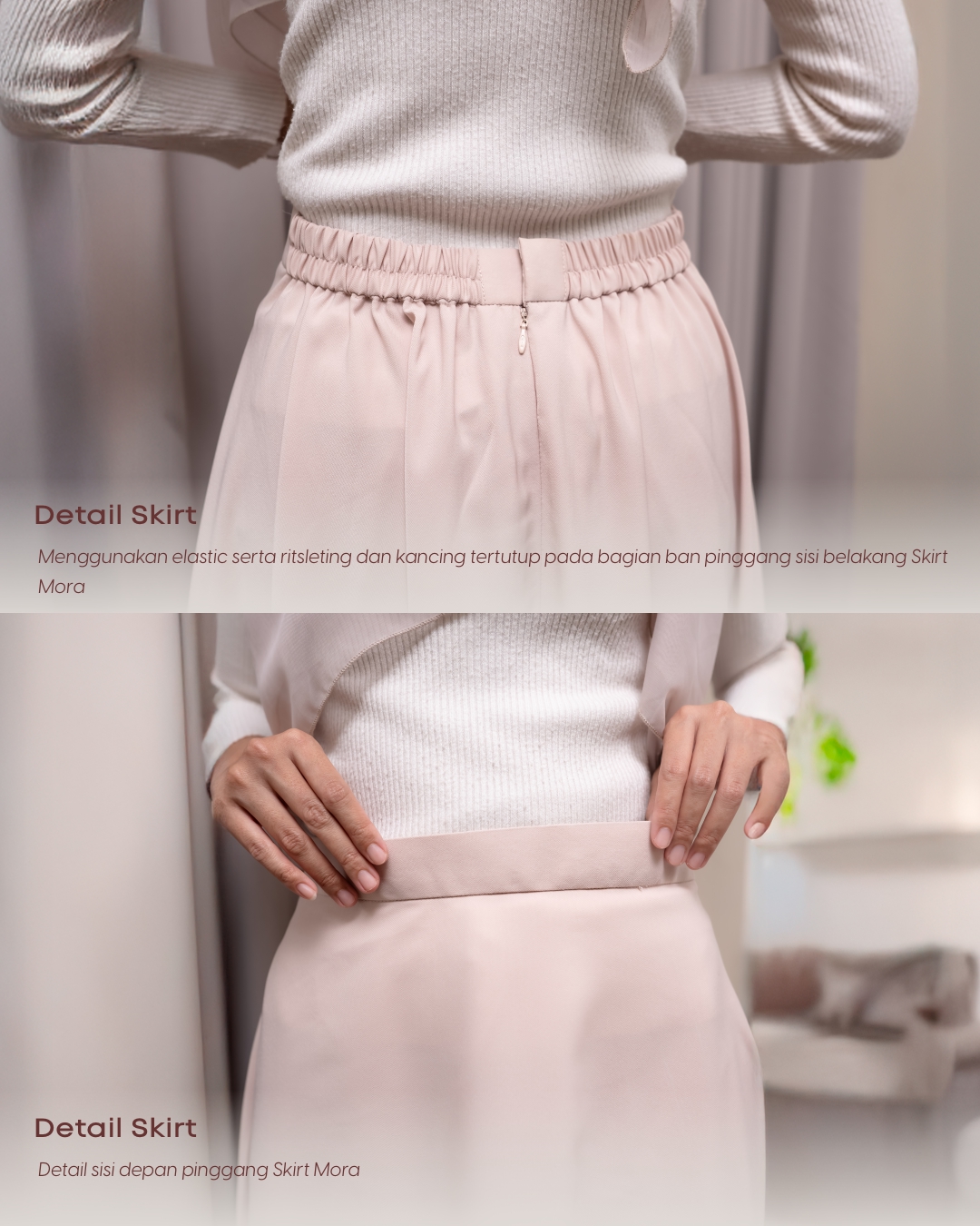 Menggunakan elastic serta resleting dan kancing tertutup pada bagian ban pinggang sisi belakang Skirt