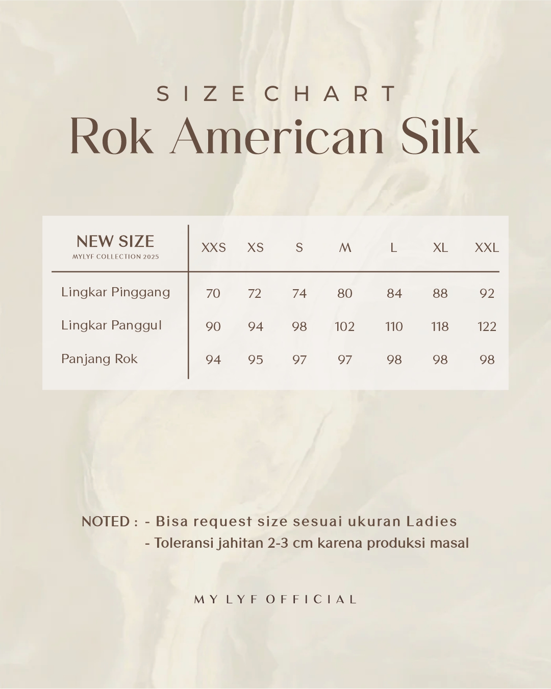 REQUEST SIZE DRESS : 1. LINGKAR DADA : 2. LINGKAR PINGGANG : 3. PANJANG BAJU : 4. PANJANG TANGAN : 5. KERUNG KETIAK / KERUNG LENGAN : 6. LINGKAR LENGAN ATAS : 📌 Noted : WAJIB mengisi semua nomer, apabila ada yang tidak diisi (ukuran otomatis mengikuti standar kami) dan jika ternyata tidak sesuai mohon maaf tidak bisa direfund 🙏
