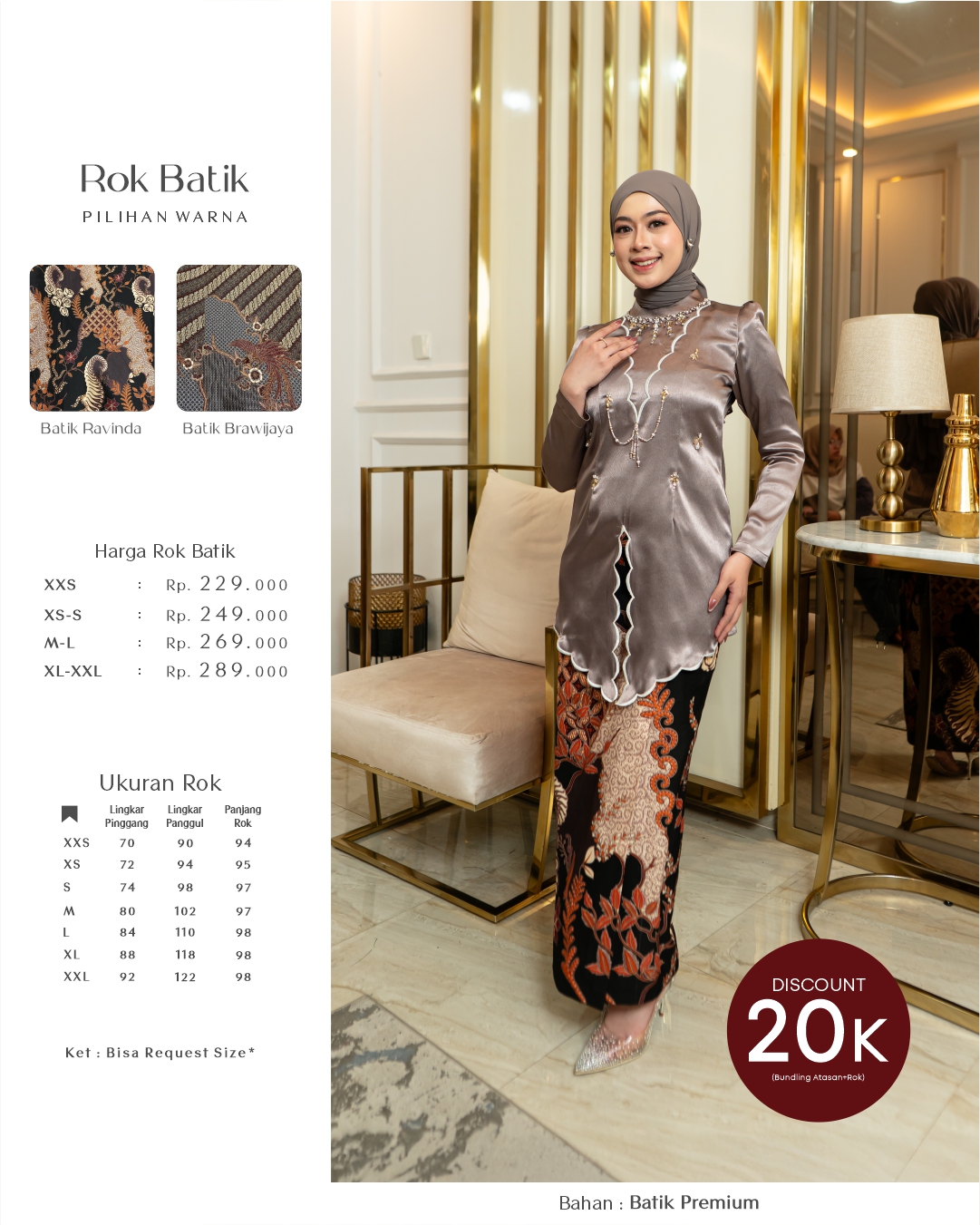 • Material utama Katun batik