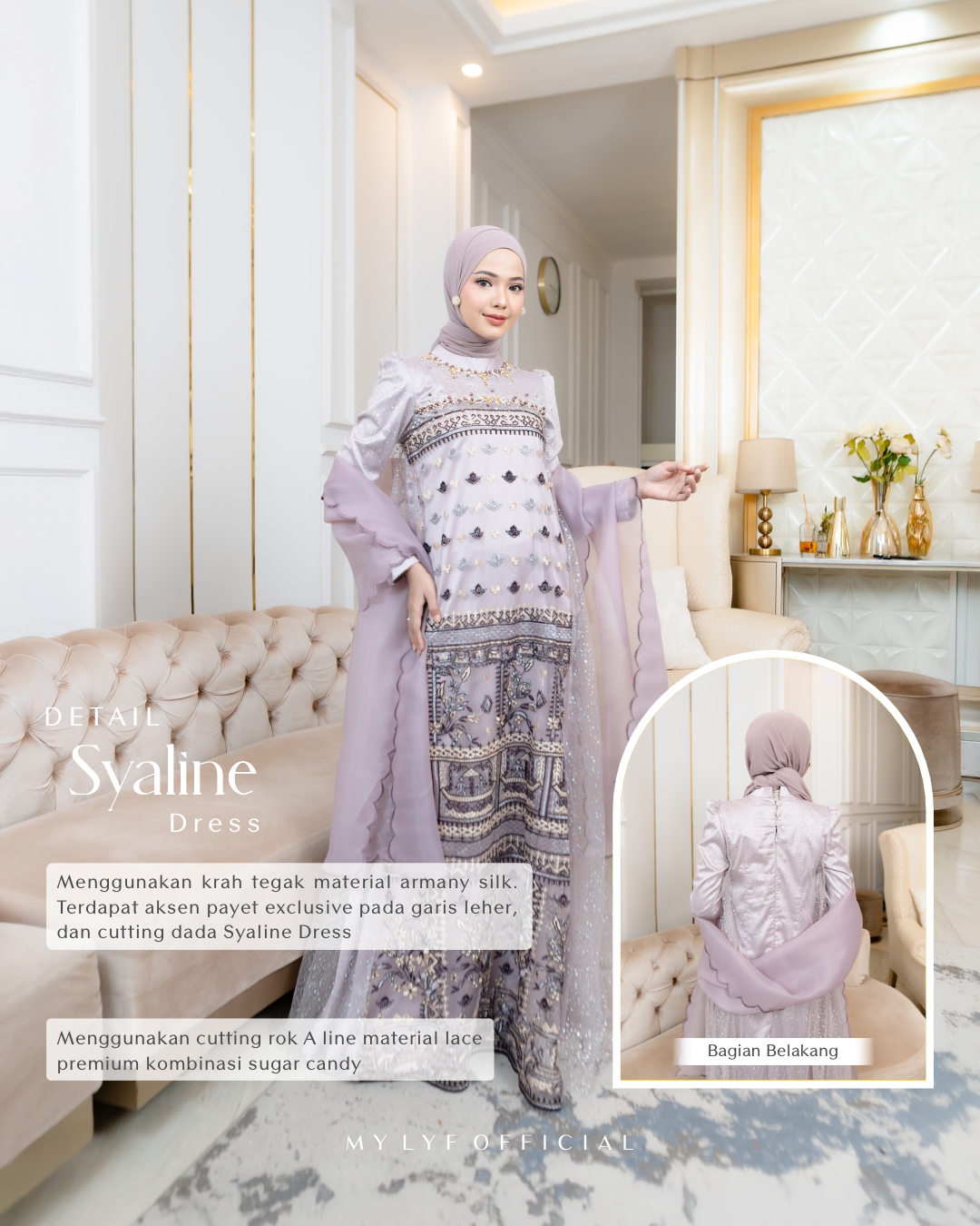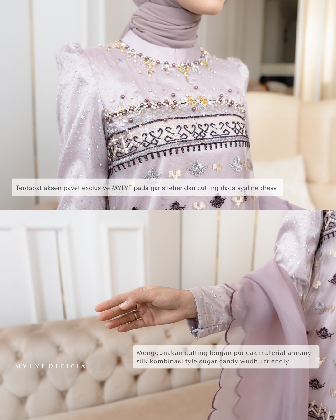 Terdapat payet exclusive MYLYF pada garis leher dan cutting dada