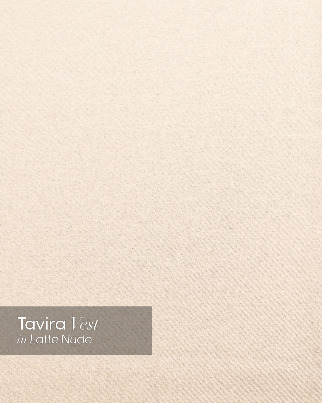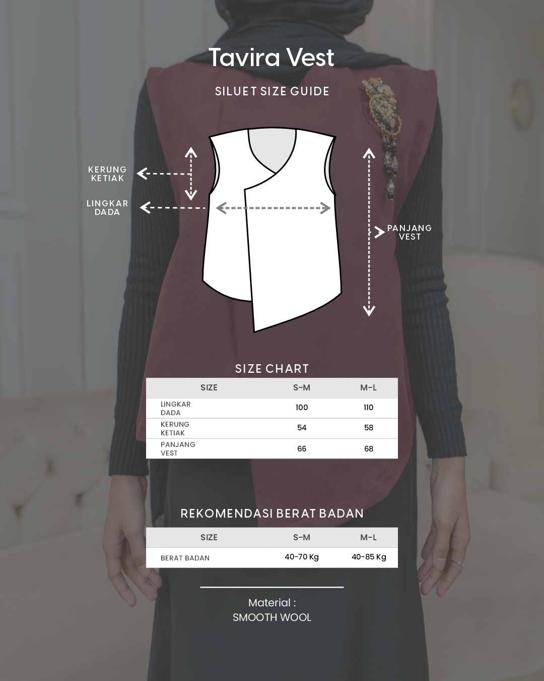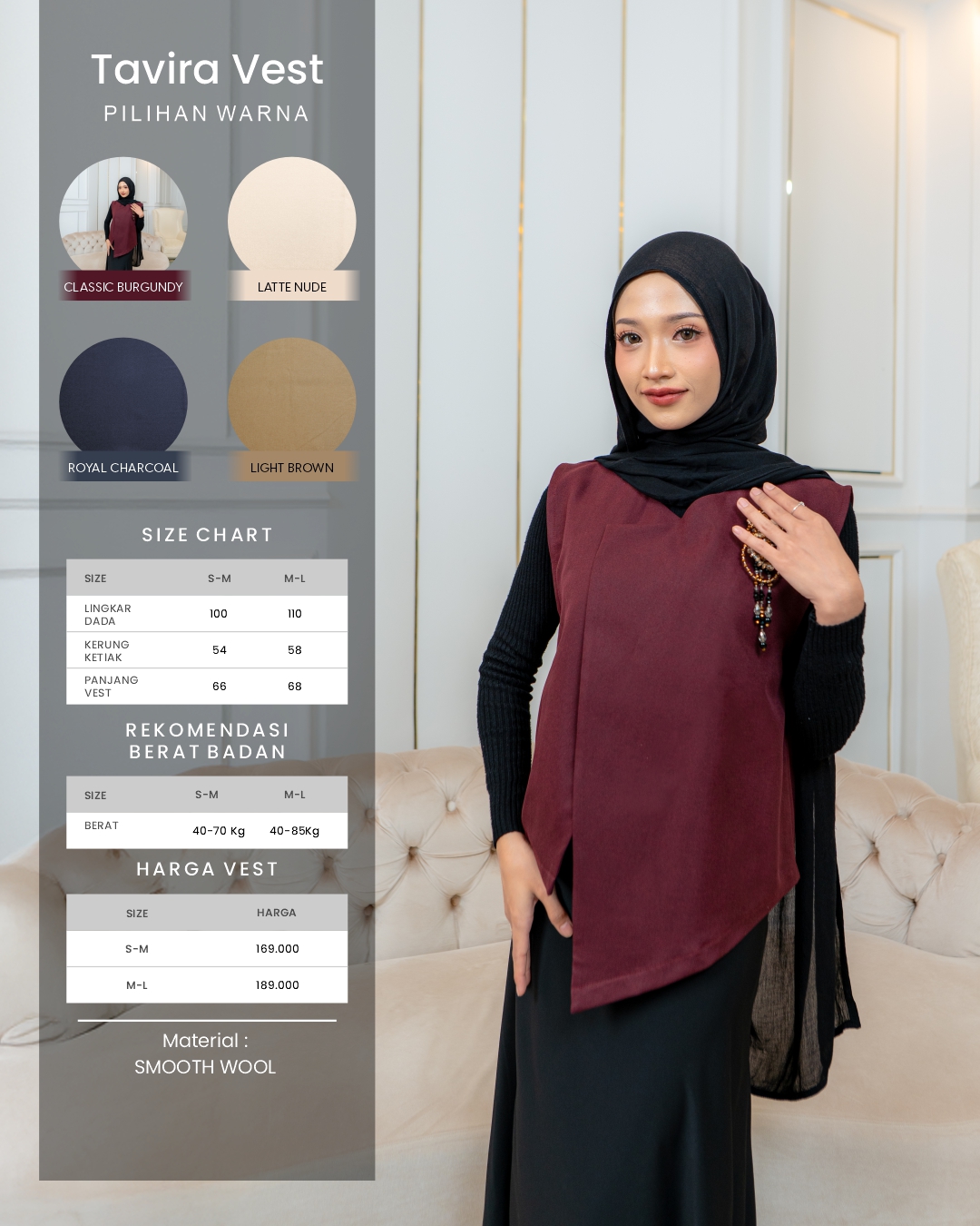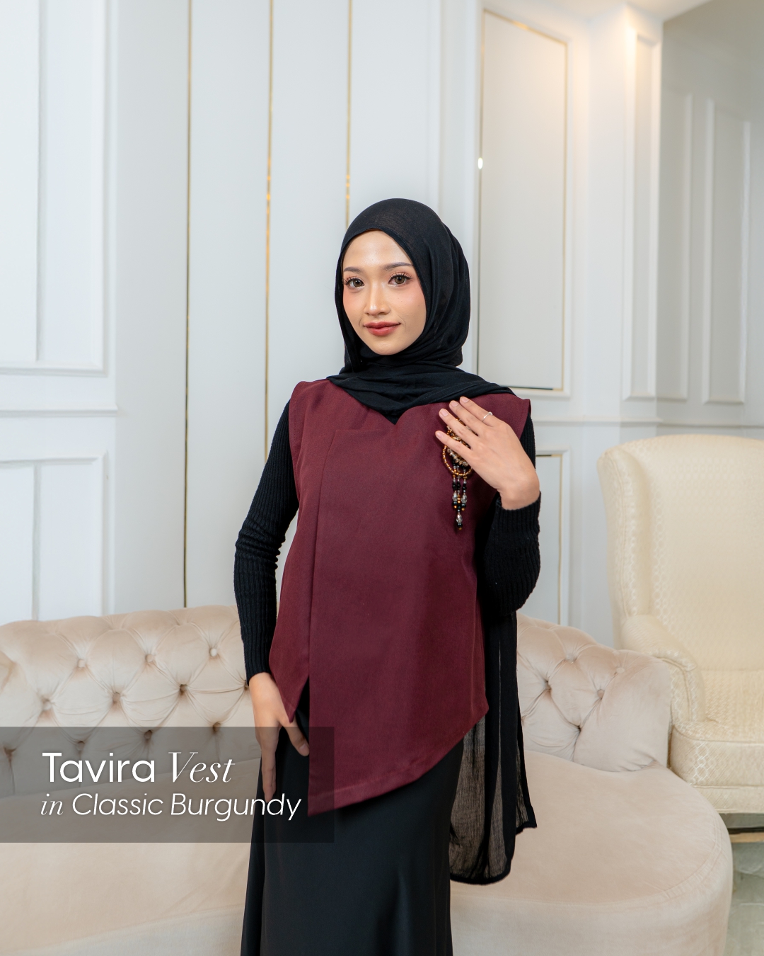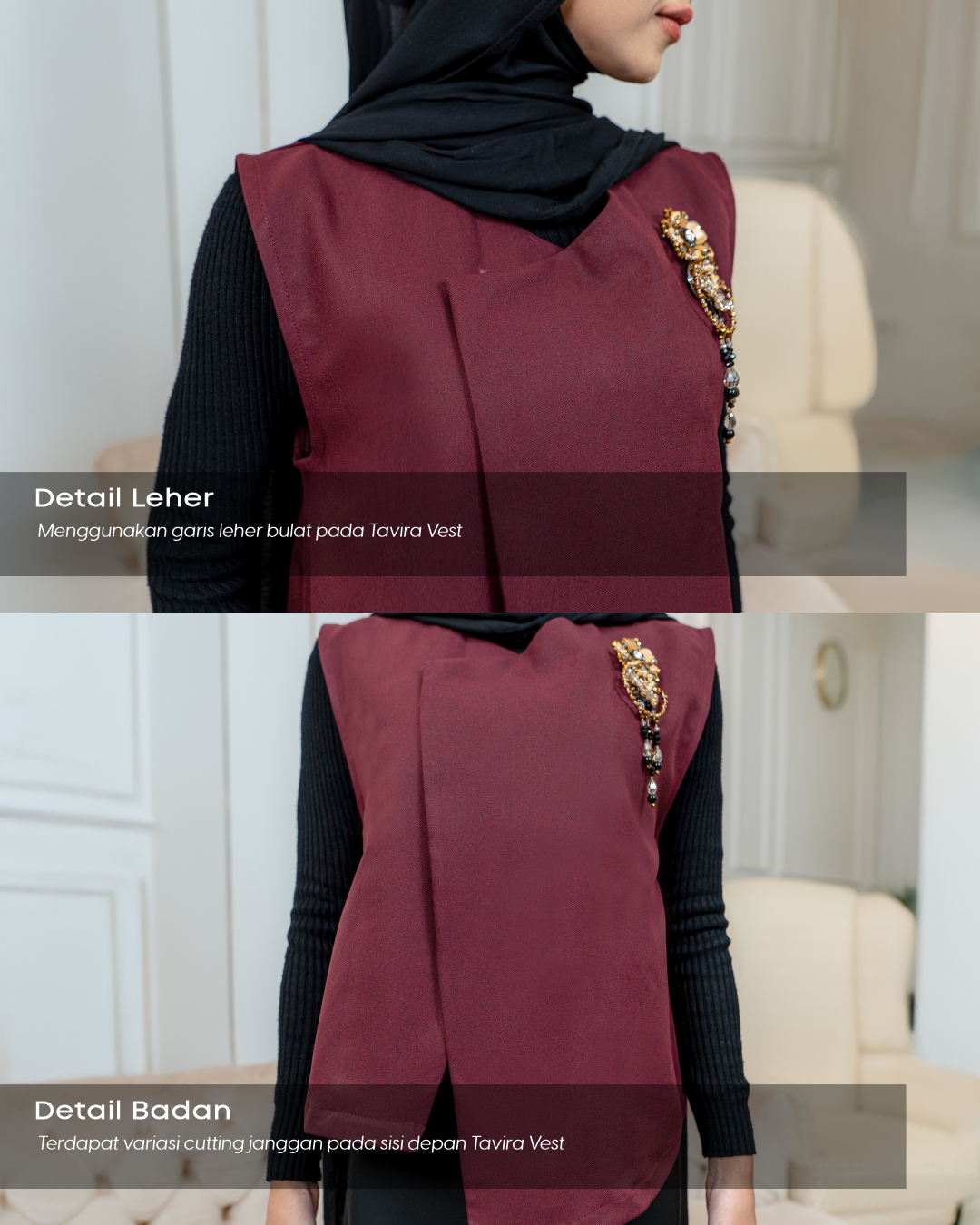 Terdapat variasi cutting janggan pada sisi depan Tavira Vest