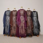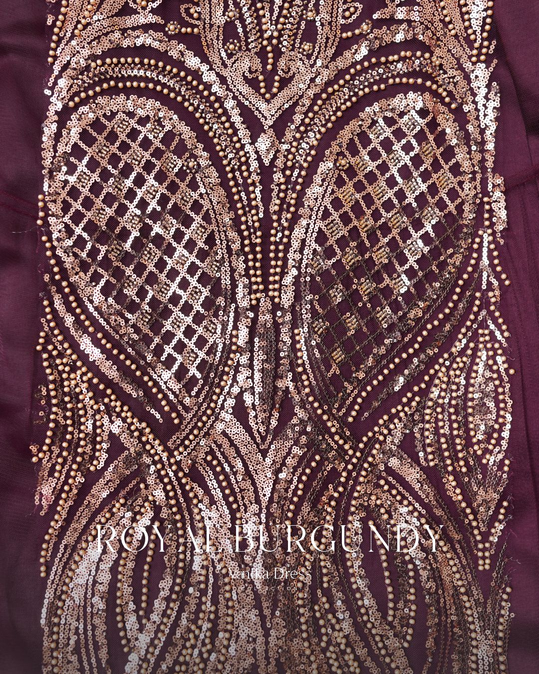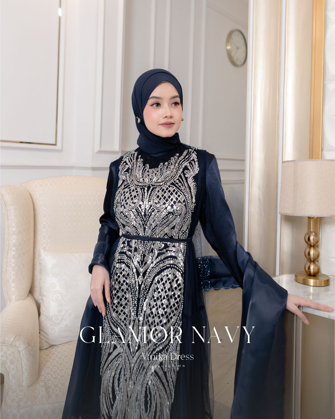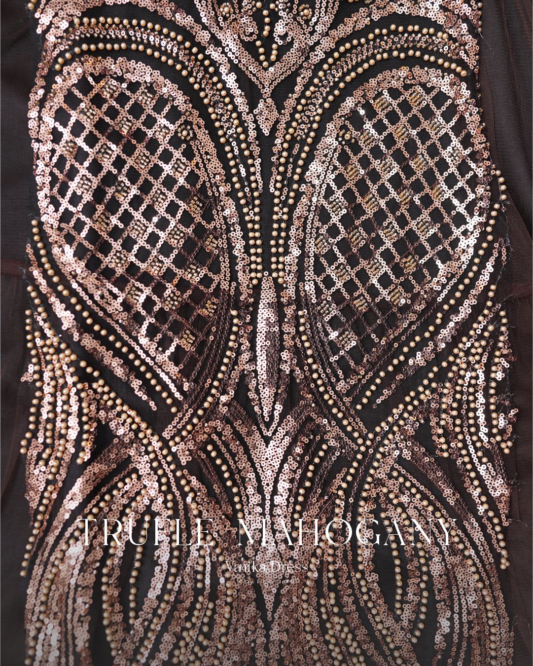 Menggunakan material maxmara tyle polos kombinasi lace payet exclusive pada badan dan aksen layer tyle sugar candy pada badan belakang Outer Vanika