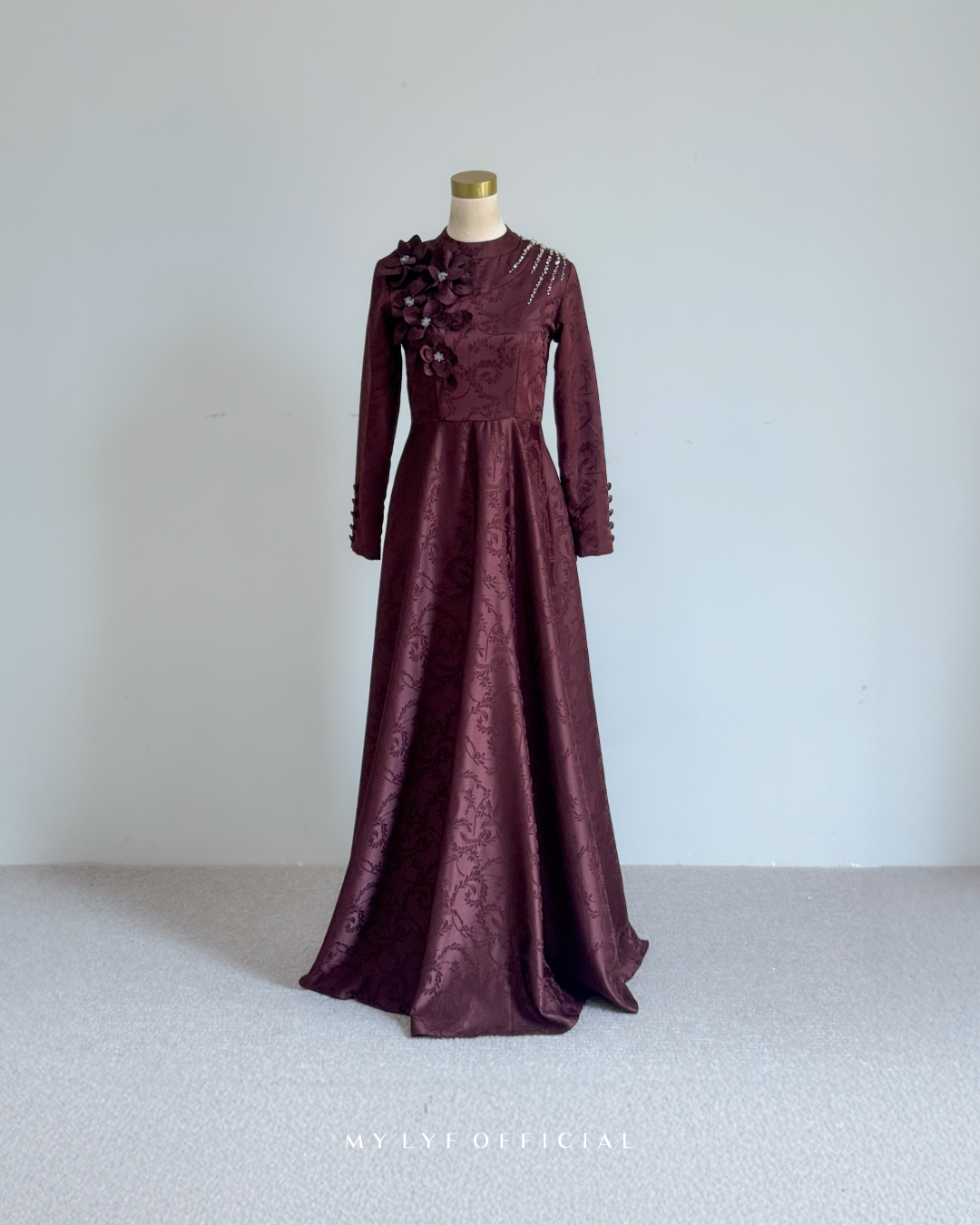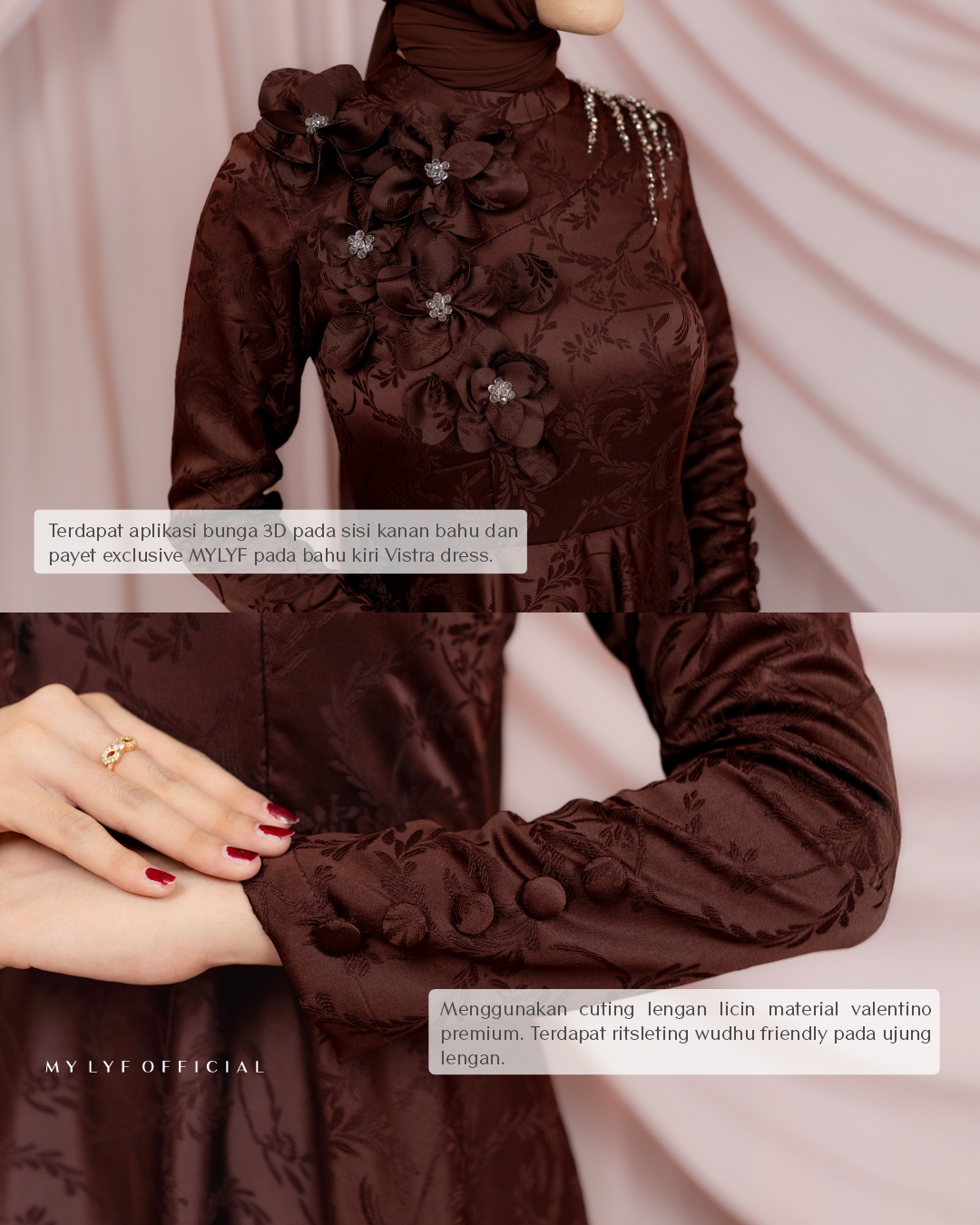 • Terdapat aplikasi bunga 3D pada sisi kanan bahu dan payet exclusive MYLYF pada bahu kiri