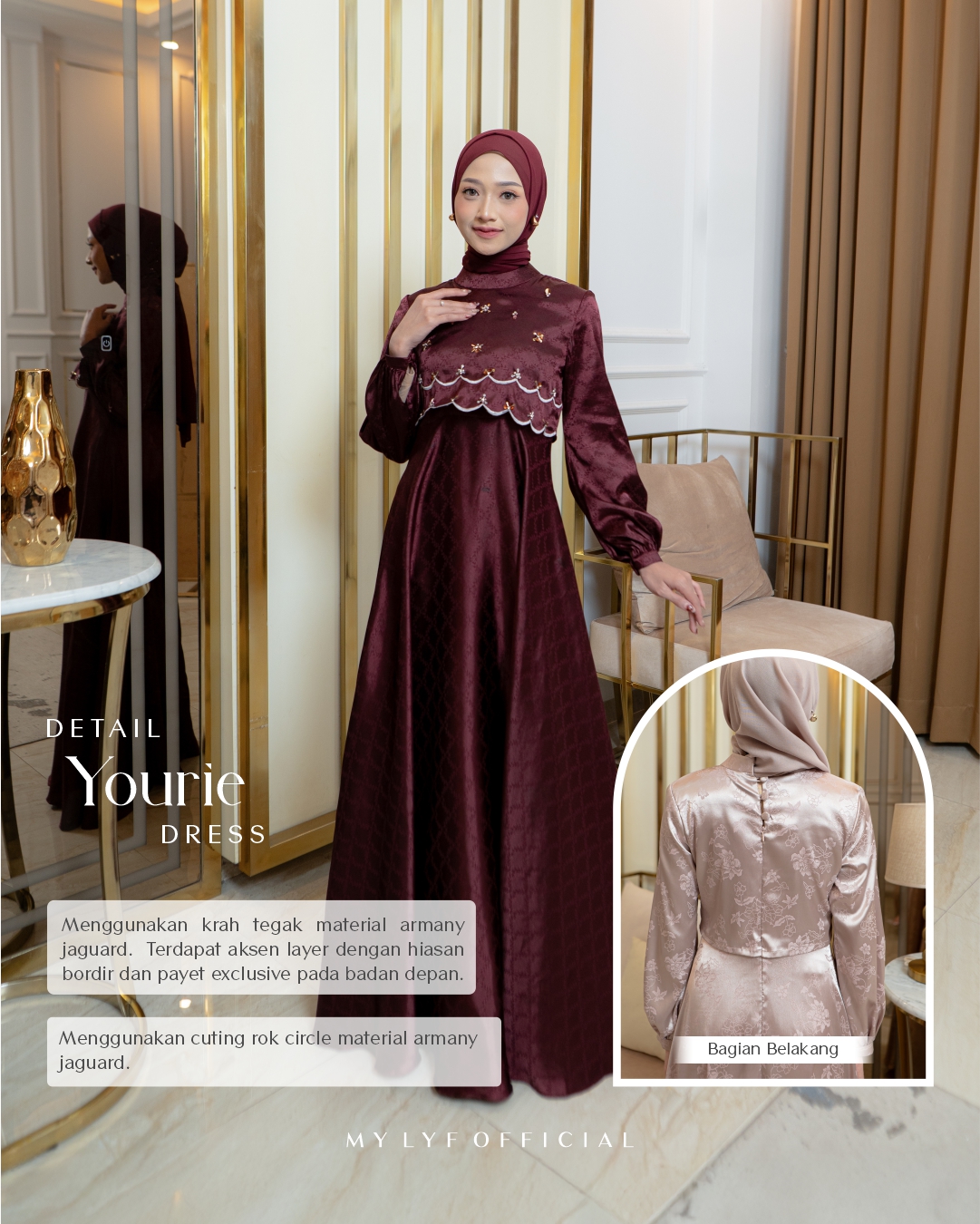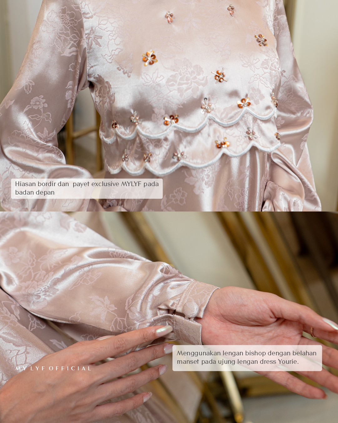 • Terdapat aksen layer dengan hiasan bordir dan payet exclusive pada badan depan