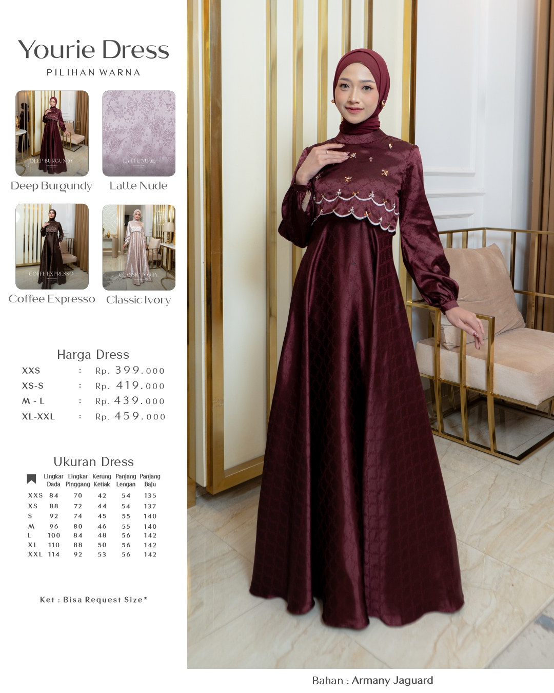 • Pola lengan bishop dan wudhu friendly