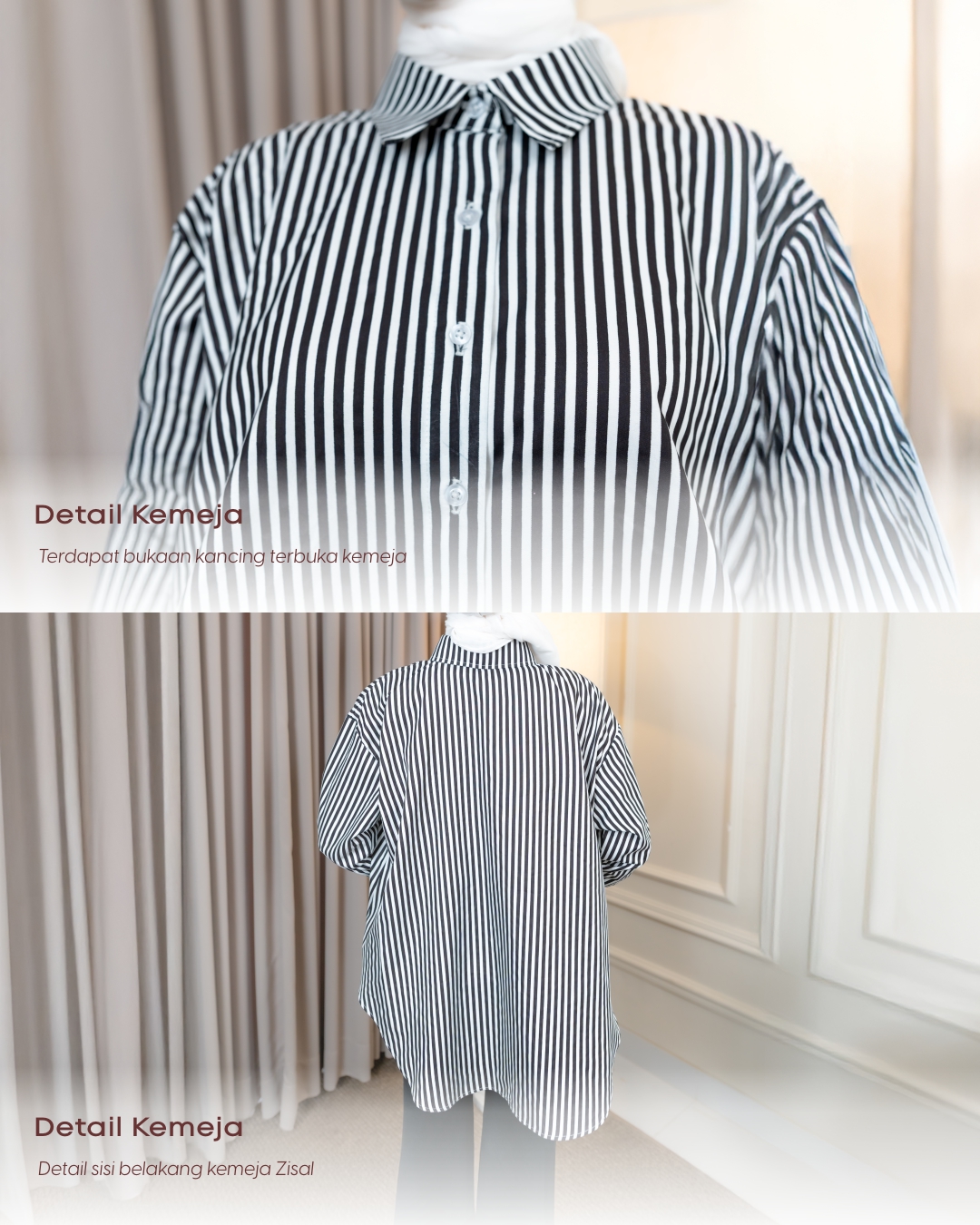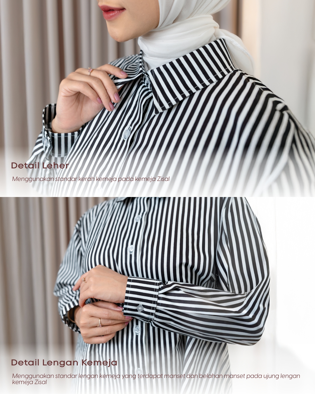 Menggunakan standar lengan kemeja yang terdapat manset dan belahan manset pada ujung lengan kemeja Zisal